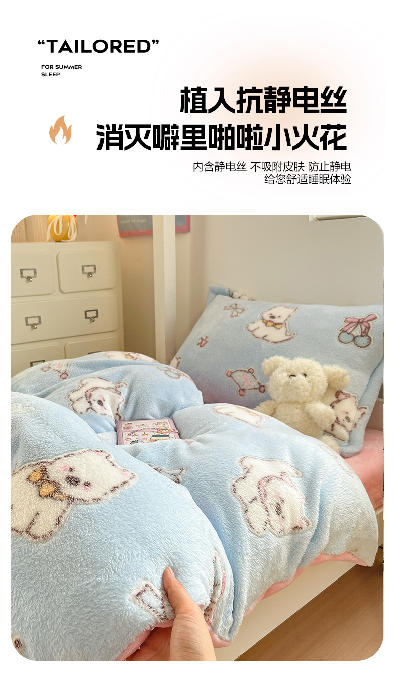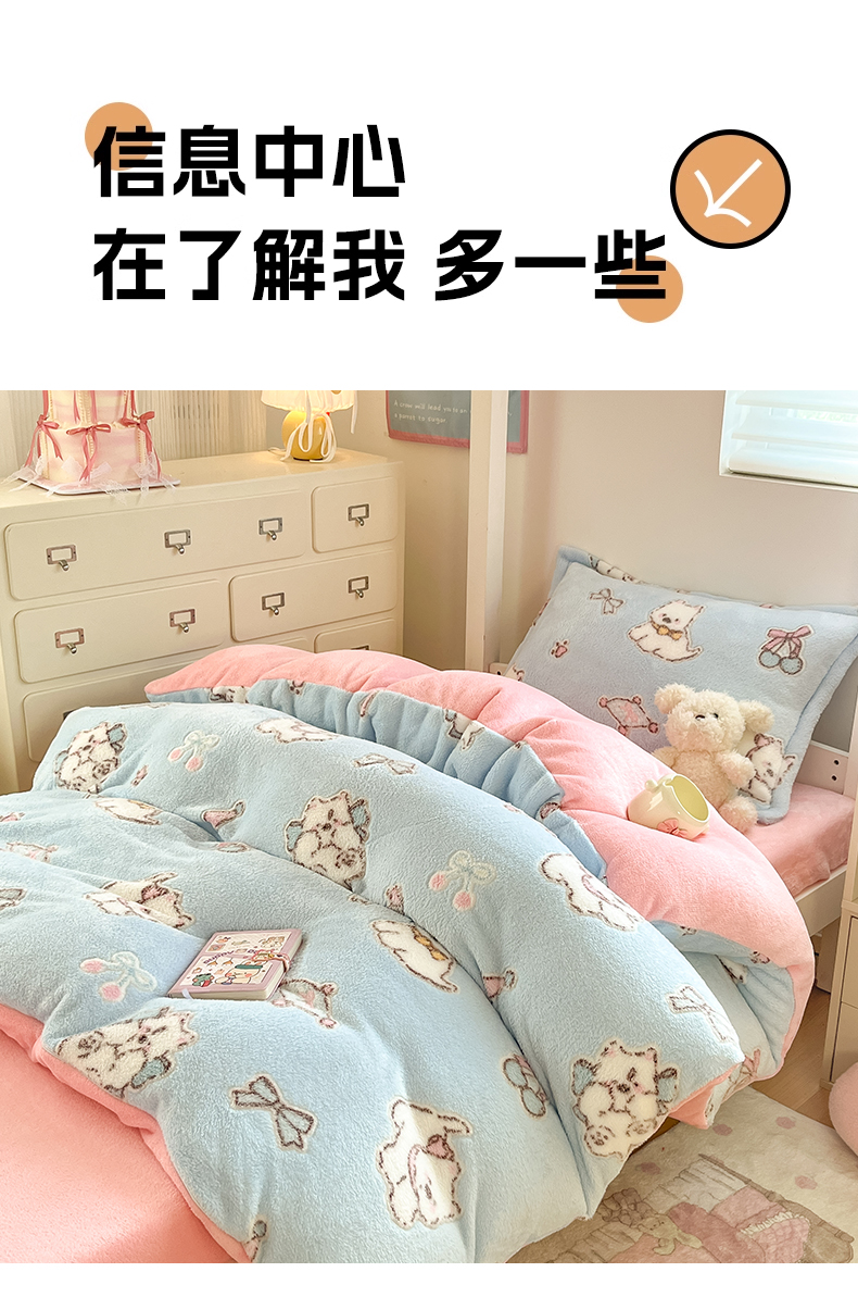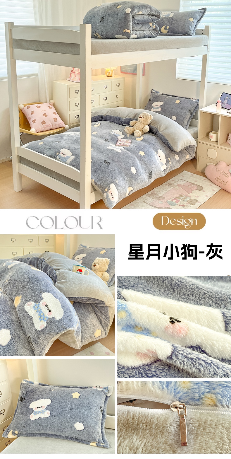 当前位置: 91家纺网 > 商品网购 > 床品套件 > 四件套 > 其它四件套 > 川悦生活 2025新款立体雪花绒印花四件套学生床系列二场景一 奶蓝小汪粉