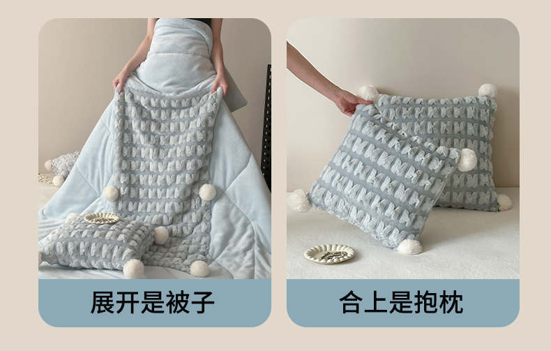 (总)多米家居 2025新款暖绒多功能剪花蝶梦抱枕被系列,福叠-蓝,福叠-粉,福叠-咖,福叠-奶白,组合