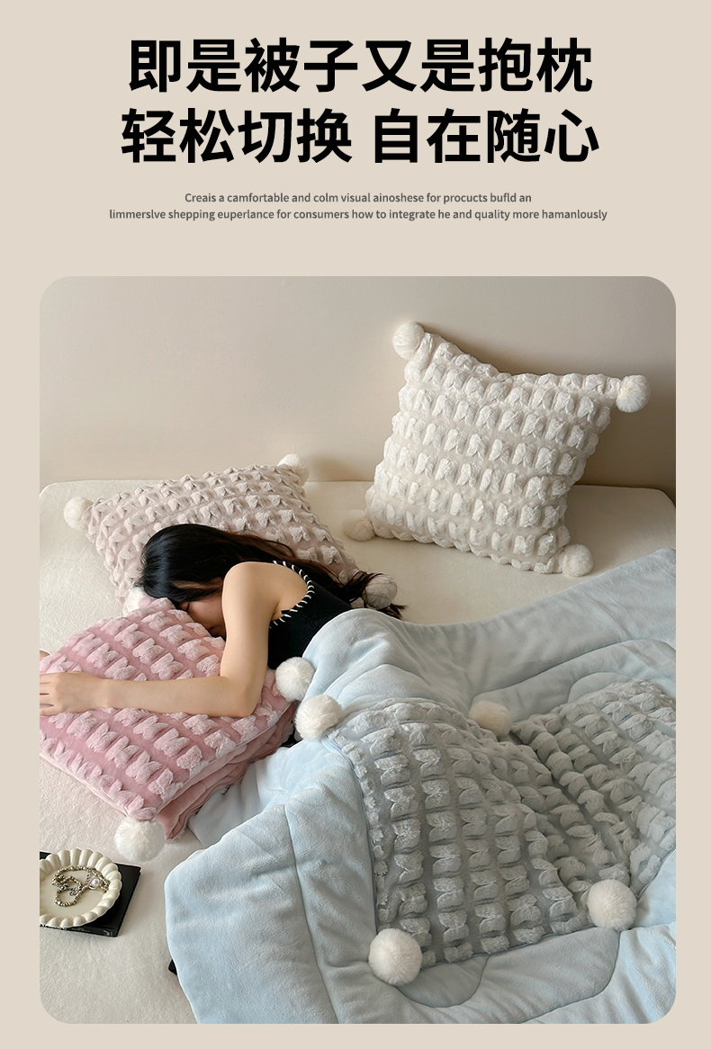 (总)多米家居 2025新款毛球波波抱枕被,波波-白,波波-粉,波波-灰,波波-咖,波波-绿