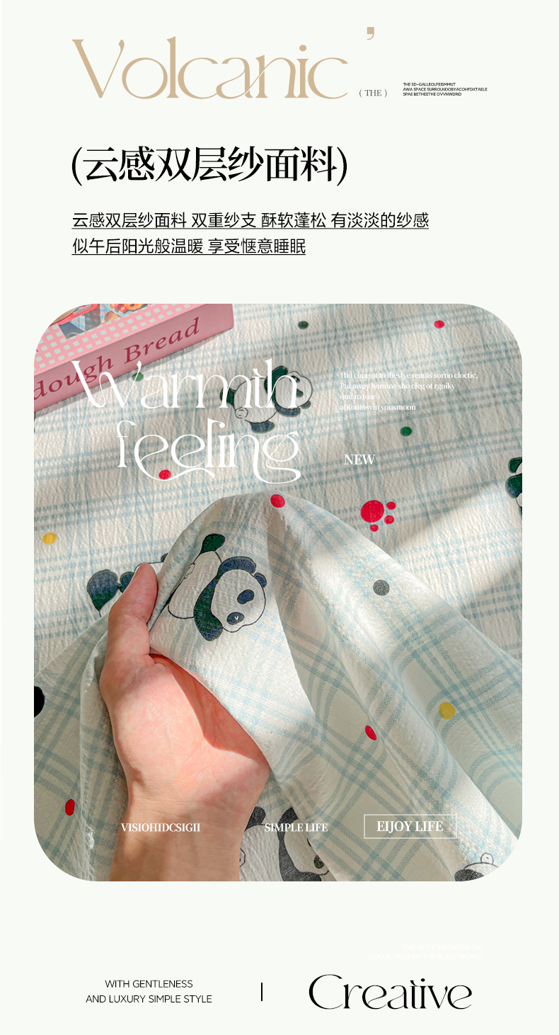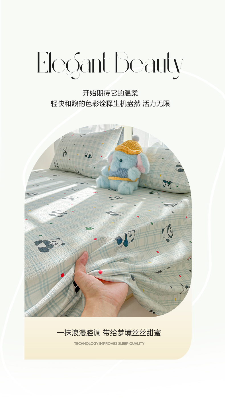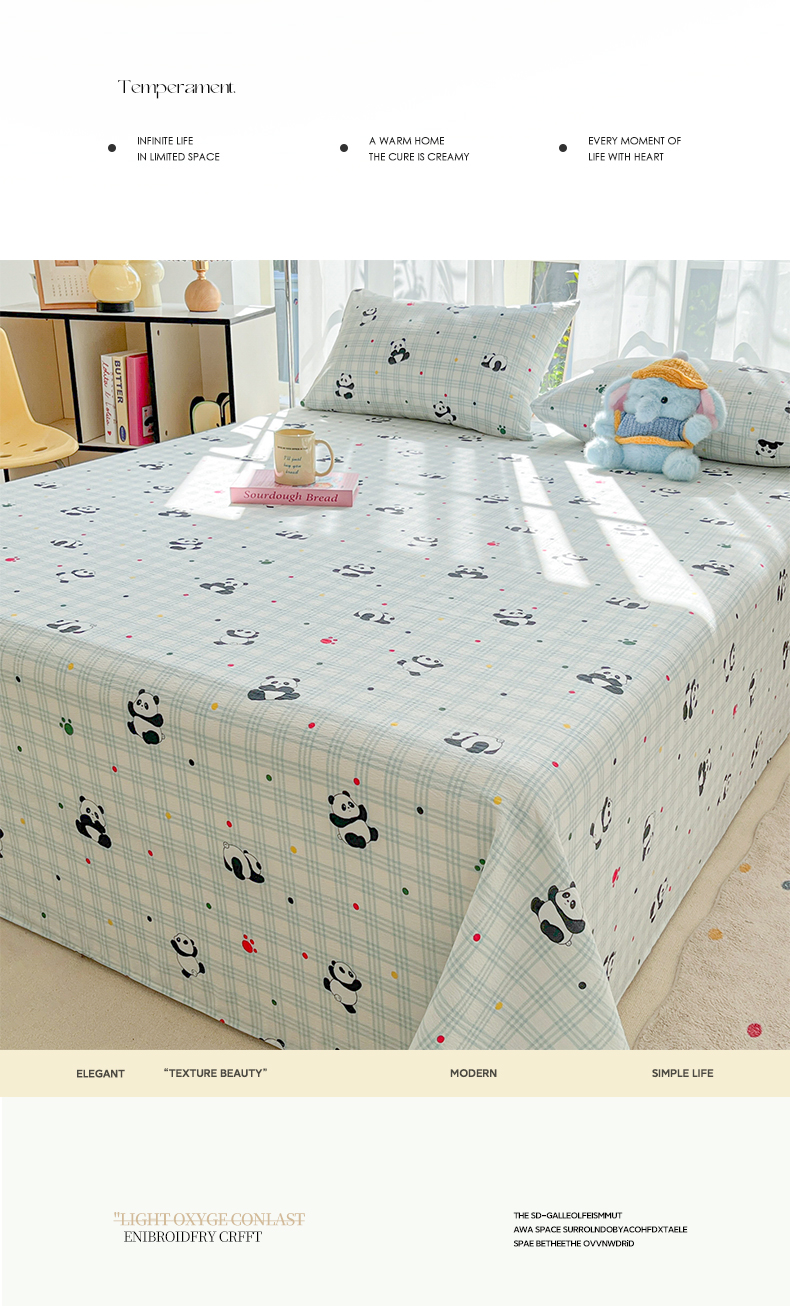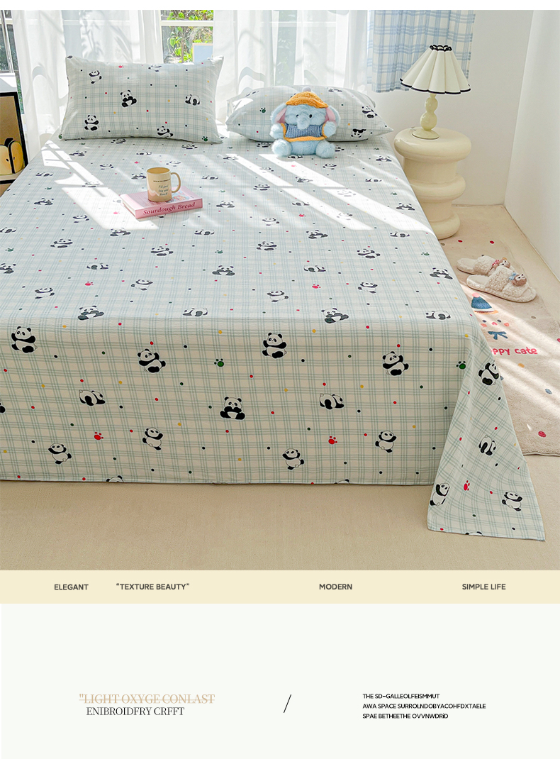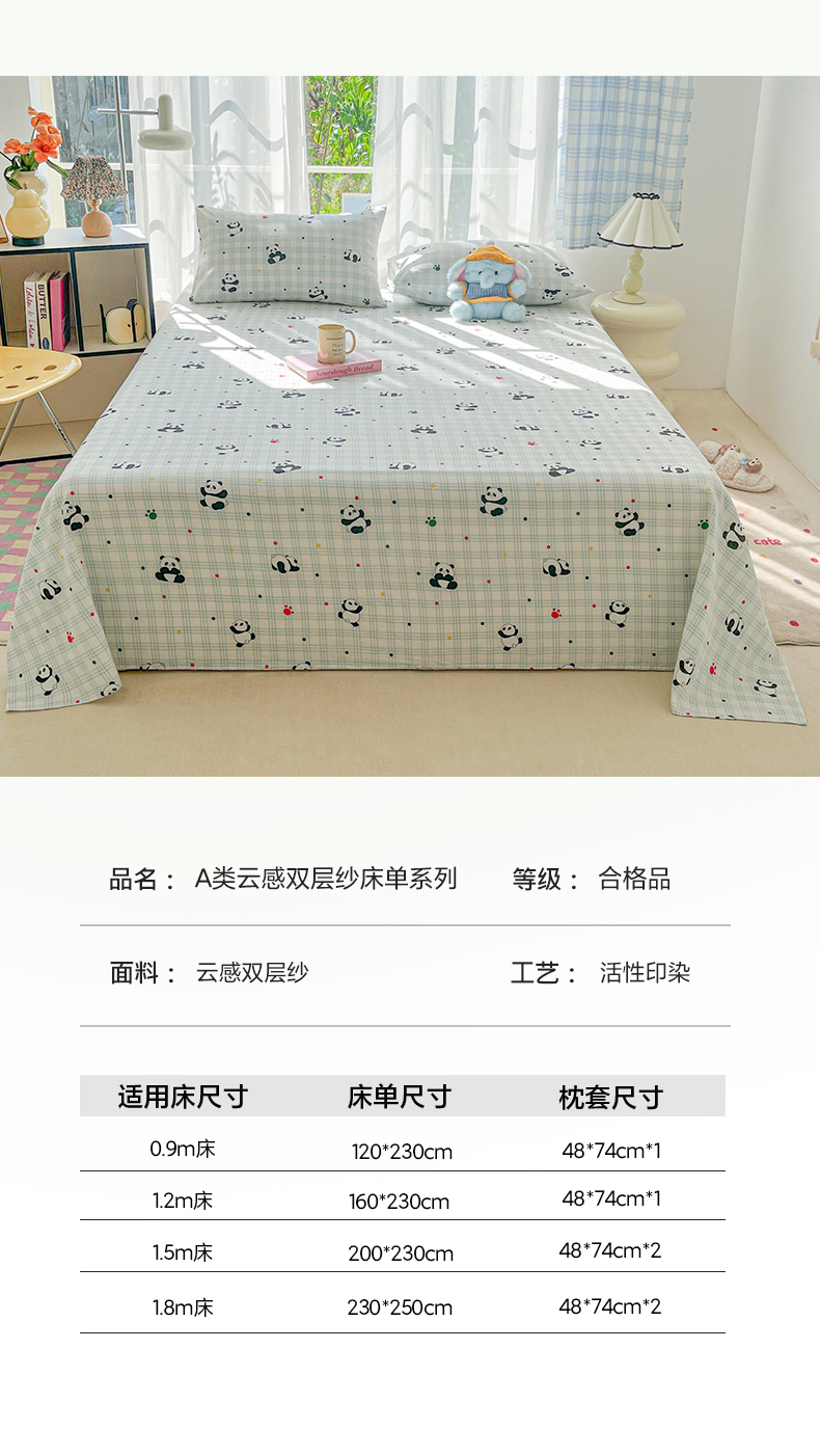 • 91家纺网 家纺一手货源 找家纺 韩巢家纺 2025新款双层纱儿童卡通风床单寝室单人学生宿舍单床单床单单件单品床单 软软熊猫