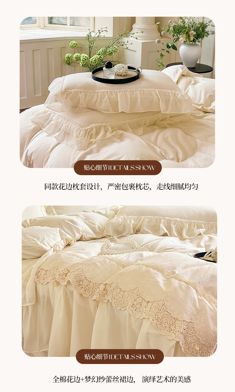 (总)庭笙 2025新款法式仙女蕾丝裙边梦幻纱四件套-赫拉花园,米白,浅粉