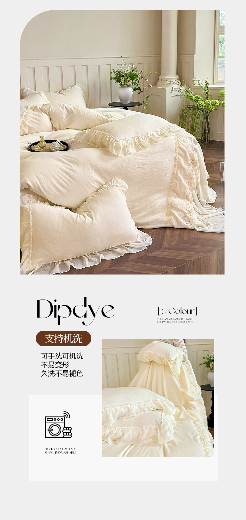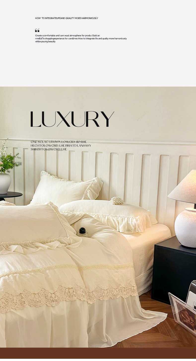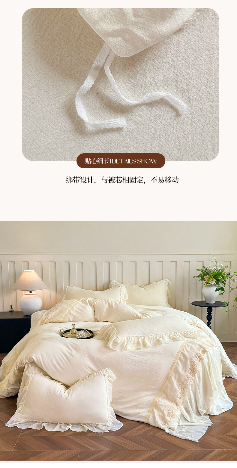 (总)庭笙 2025新款仙女小清新褶皱裙边少女背带公主裙摆法式梦幻纱蕾丝四件套,公主裙摆-米白,公主裙摆-浅粉