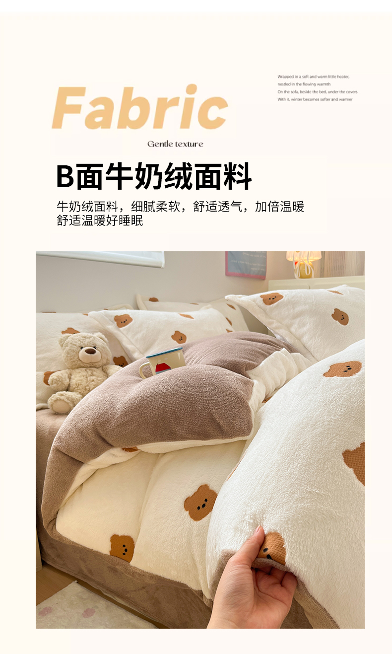 当前位置: 91家纺网 > 商品网购 > 床品套件 > 四件套 > 其它四件套 > 川悦生活 2025新款立体雪花绒印花大床四件套系列二场景一 豆奶小熊