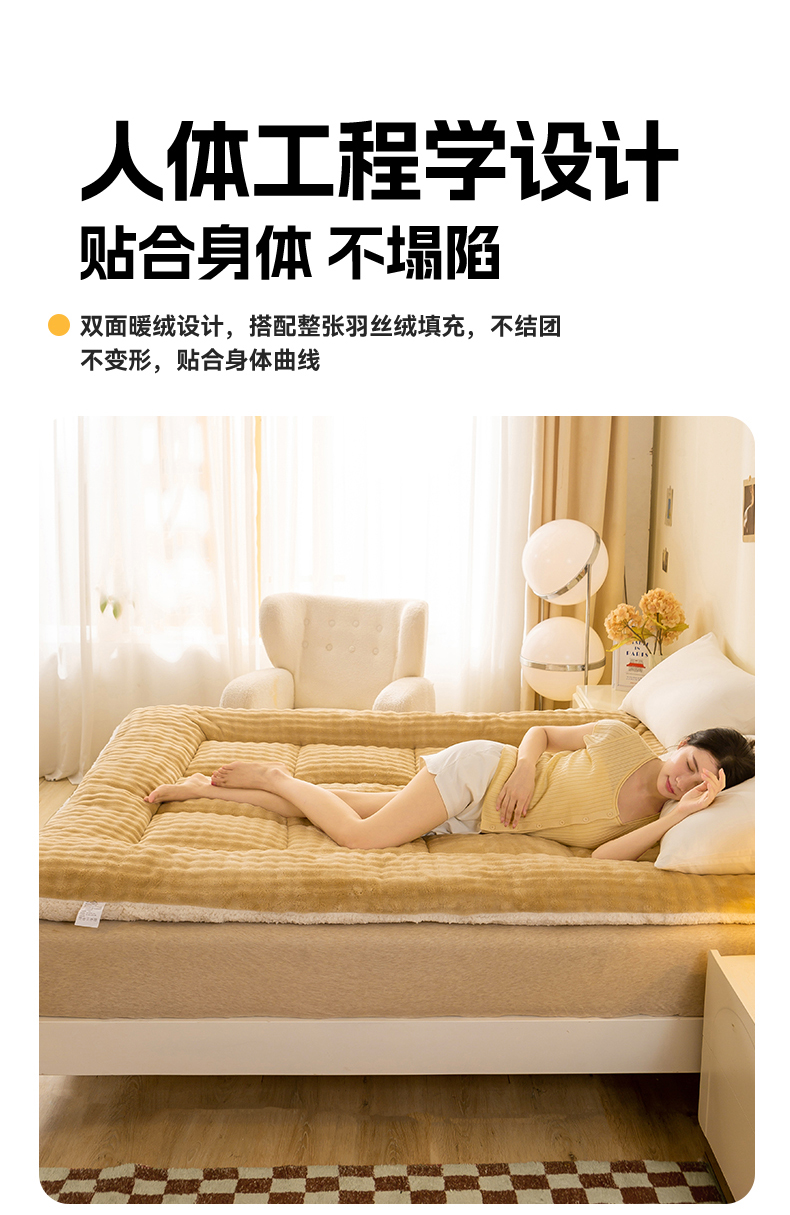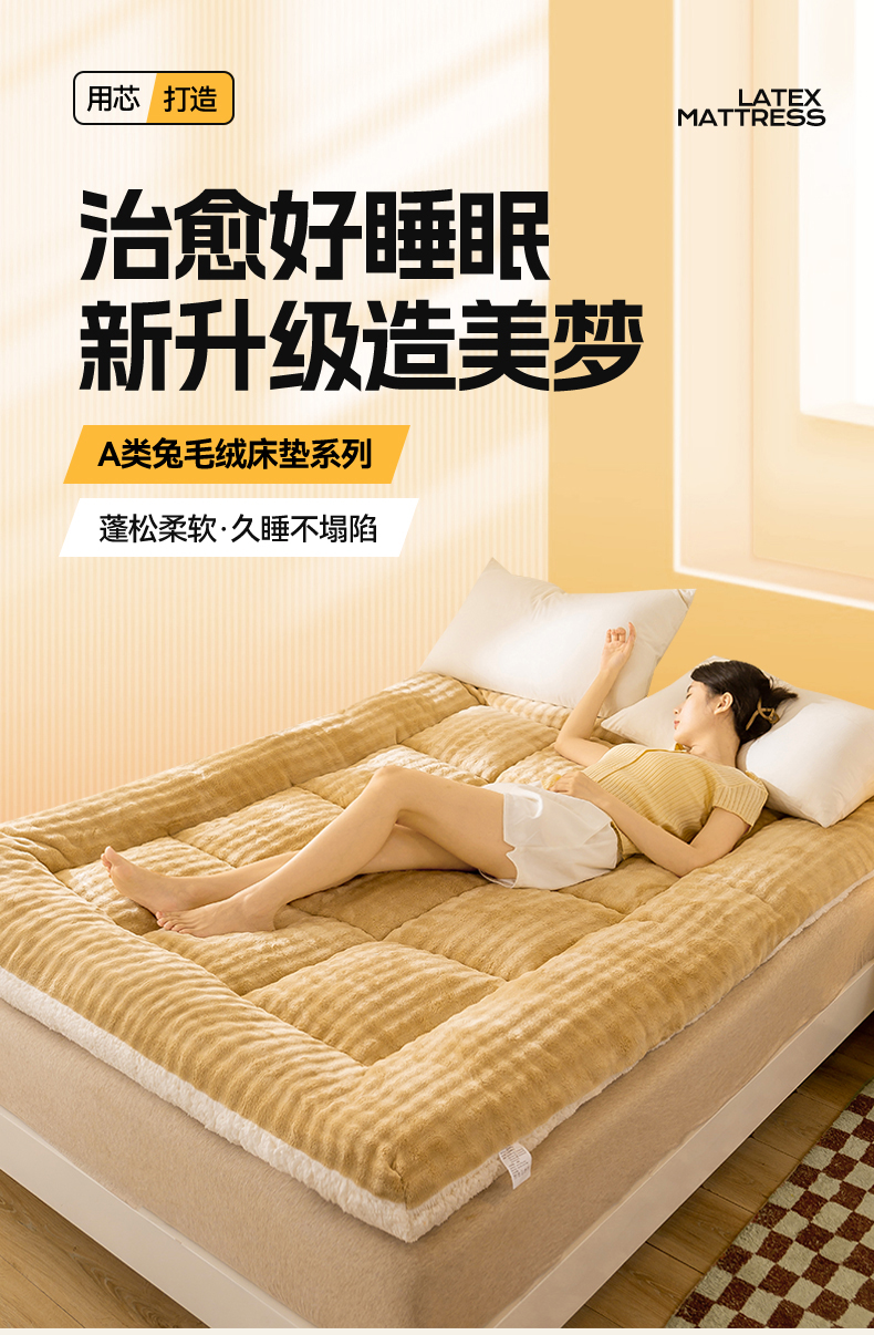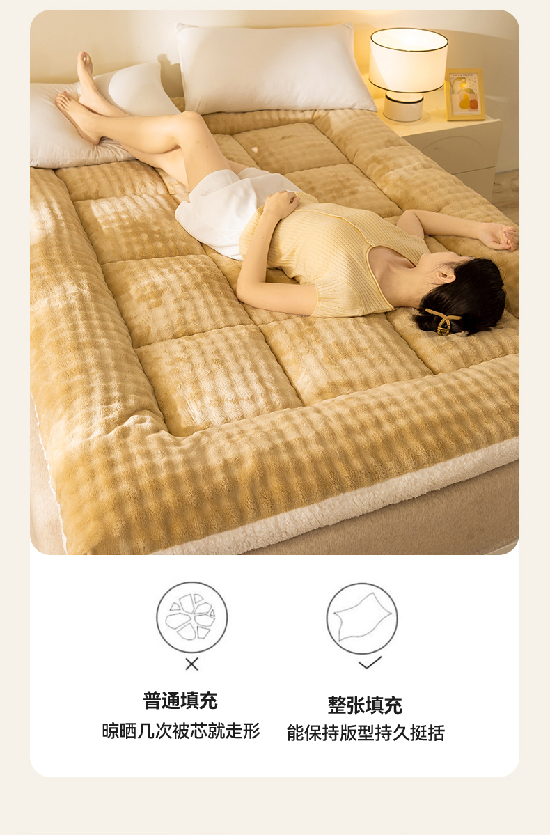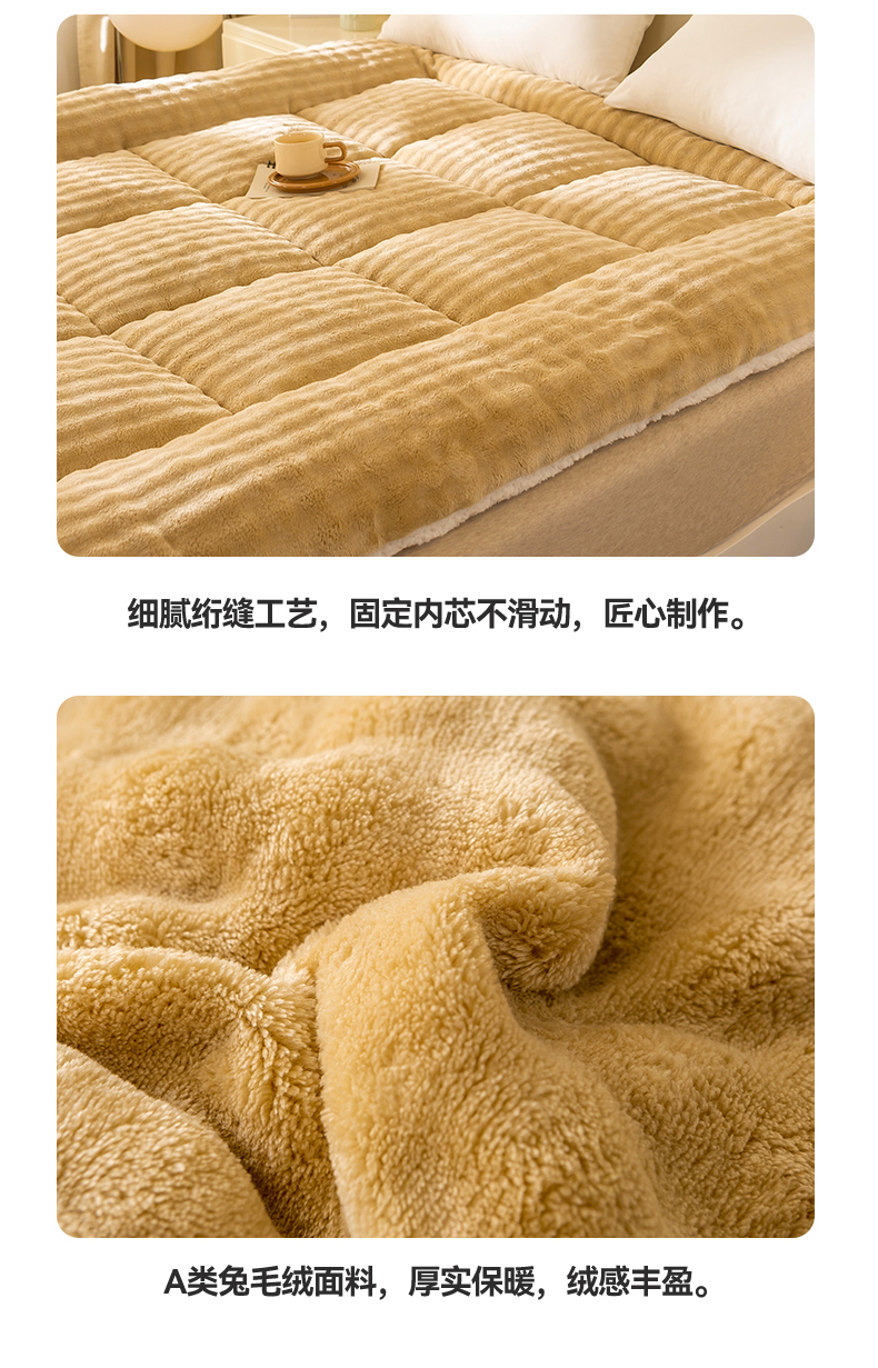 当前位置: 91家纺网 > 商品网购 > 床垫/床褥 > 普通床垫 > 米乐被业 2025新款高克重兔毛绒床垫 咖色