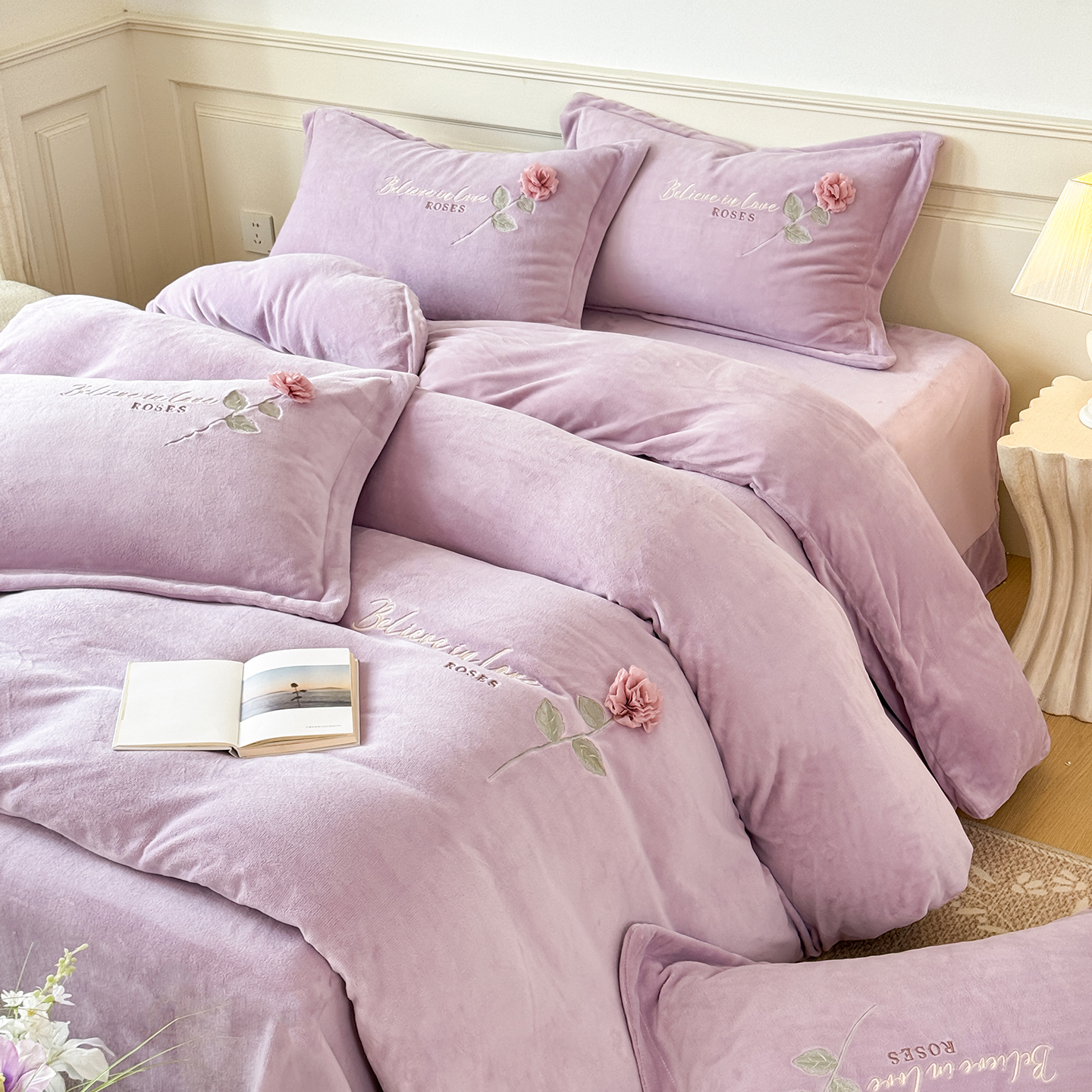 (总)恋尚羽家纺 2025秋冬热款刺绣牛奶绒四件套-郁金香,郁金香-豆沙,郁金香-粉玉,郁金香-灰色,郁金香-紫色