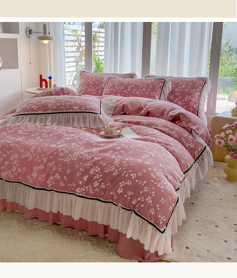 (总)恋尚羽家纺 2025新款韩版花边婴儿绒绣花大床裙四件套宝宝绒婴肤绒公主风韩式,大红色,豆沙色,粉色,湖蓝色,灰色,桔色,墨绿色,紫色