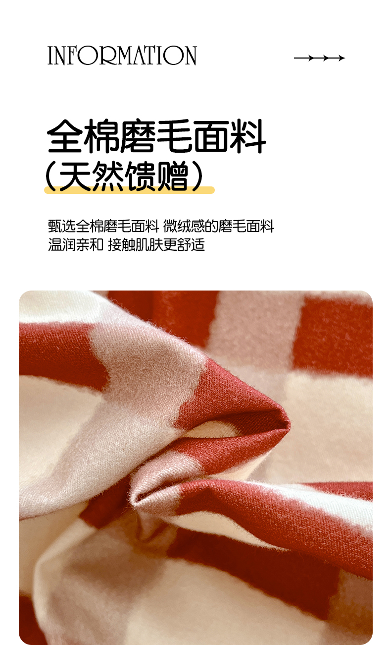 商品名称:忆生活 2025秋冬全棉加厚磨毛贝壳边四件套格言-红