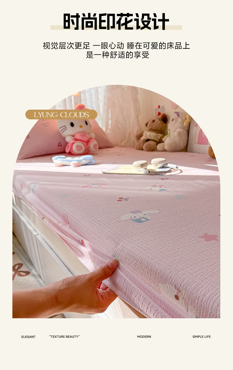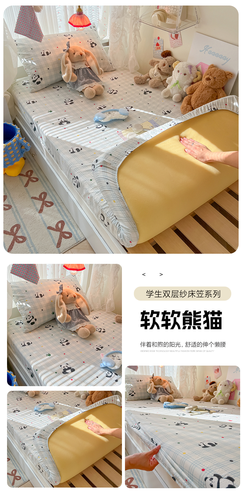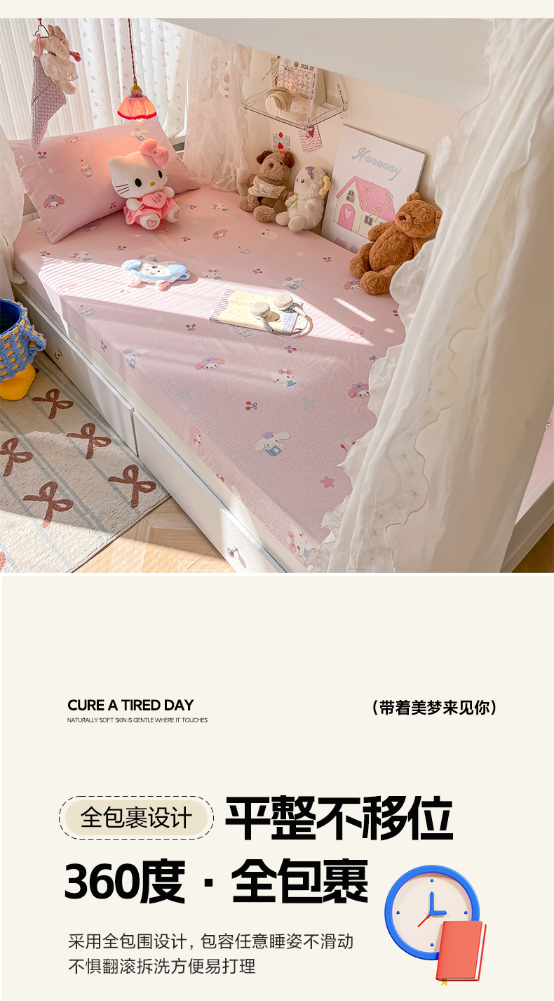 • 91家纺网 家纺一手货源 找家纺 韩巢家纺 2025新款A类学生宿舍上下铺床笠单件床垫保护罩枕套三件套 萌物家族