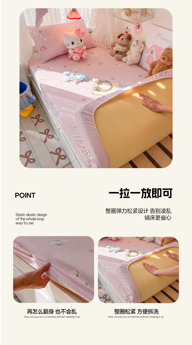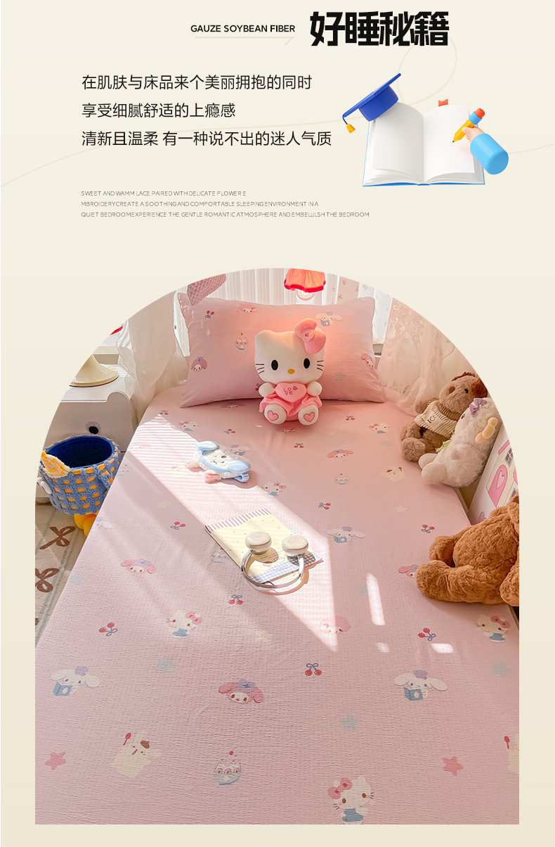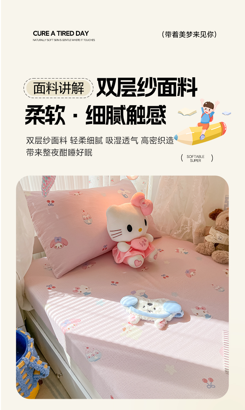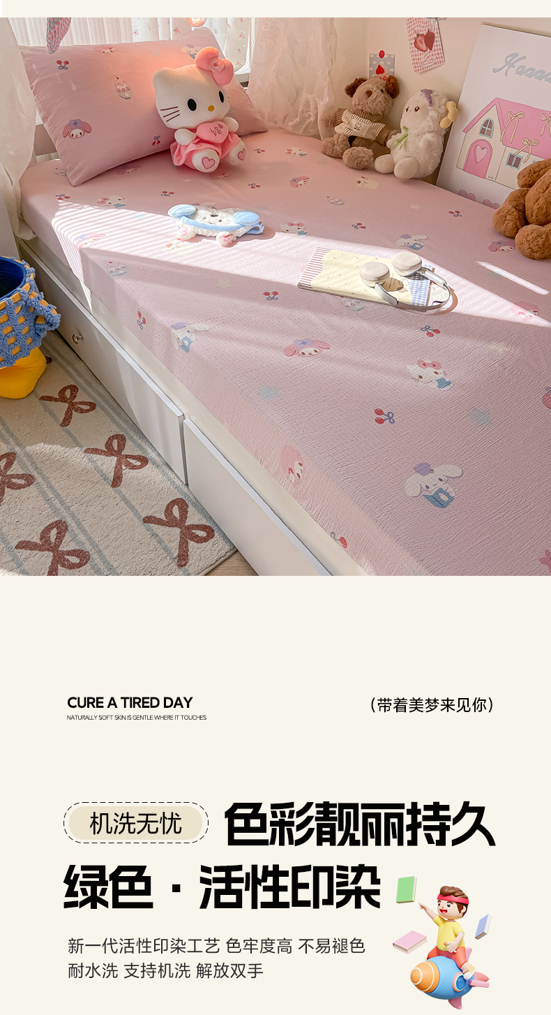 • 91家纺网 家纺一手货源 找家纺 韩巢家纺 2025新款A类学生宿舍上下铺床笠单件床垫保护罩枕套三件套 萌物家族