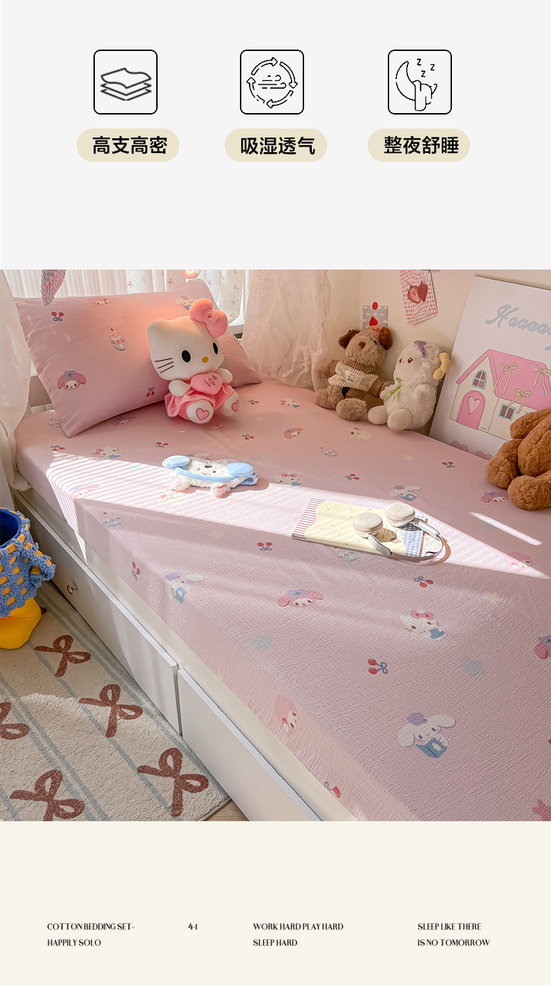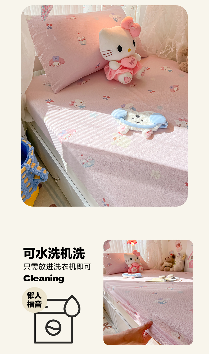 韩巢家纺 2025新款A类学生宿舍上下铺床笠单件床垫保护罩枕套三件套 萌物家族