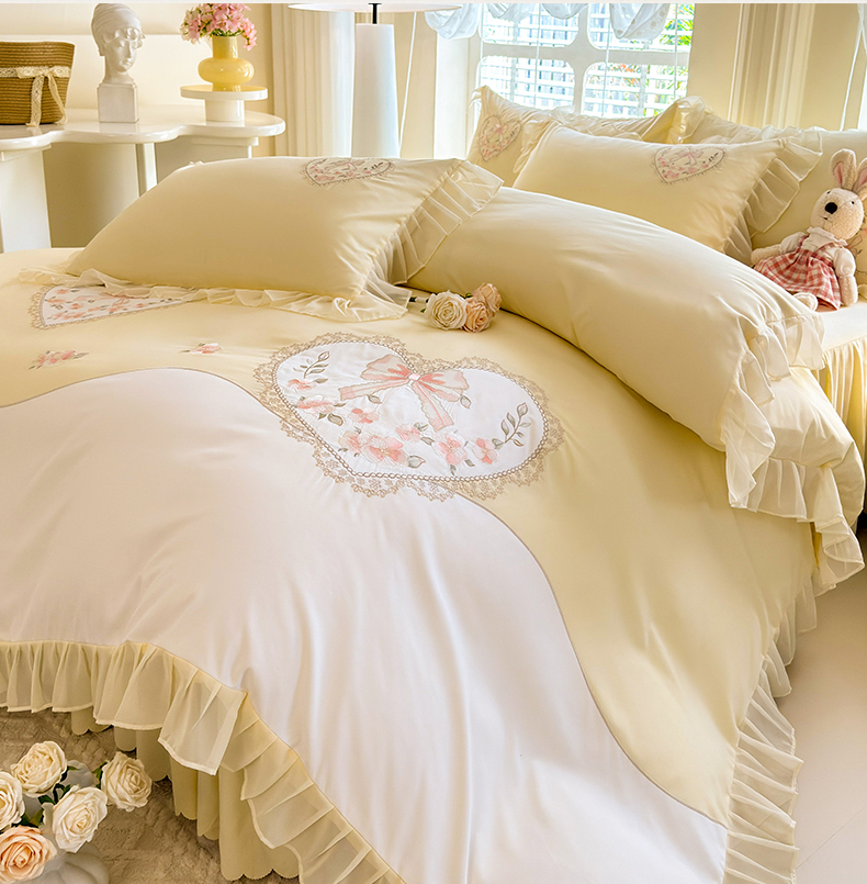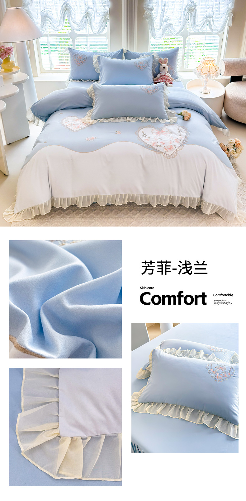 当前位置: 91家纺网 > 商品网购 > 床品套件 > 四件套 > 普通磨毛四件套 > 慕语家纺 2025新款少女系贴布绣蕾丝花边水洗磨毛棉四件套--芳菲系列(专版花型) 芳菲-浅紫