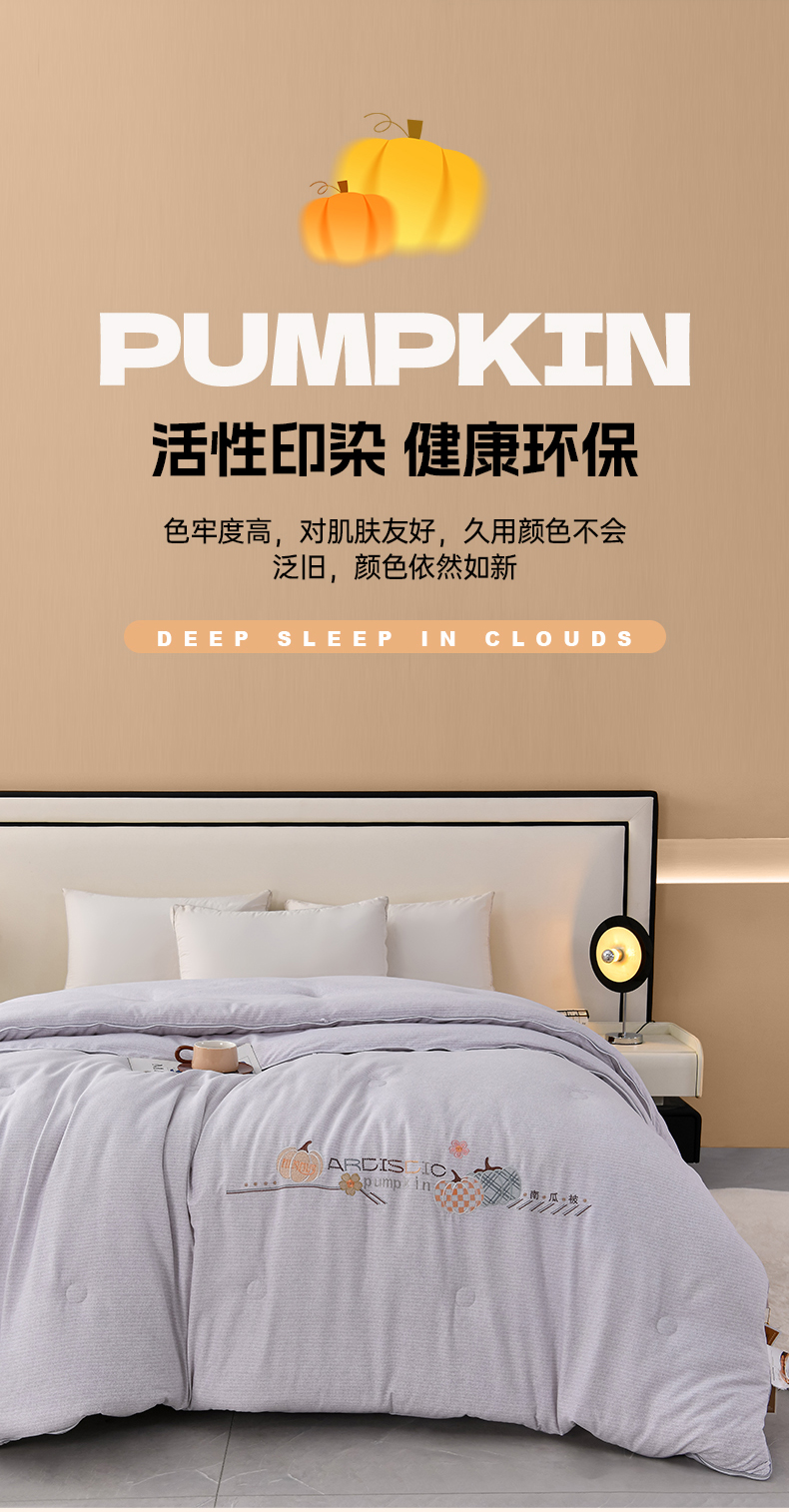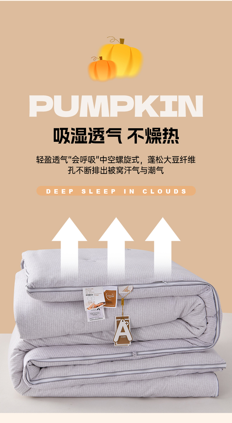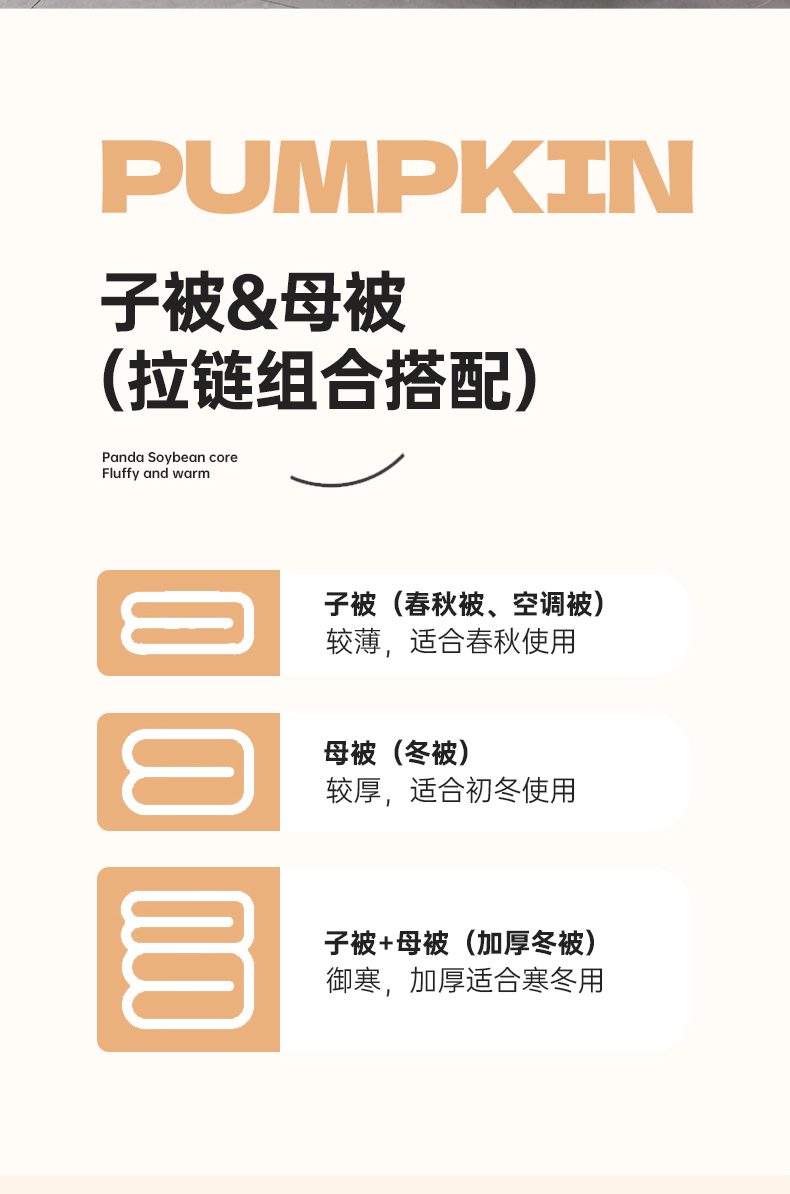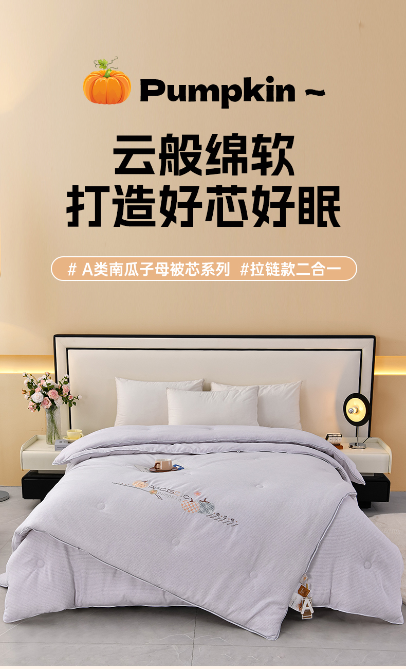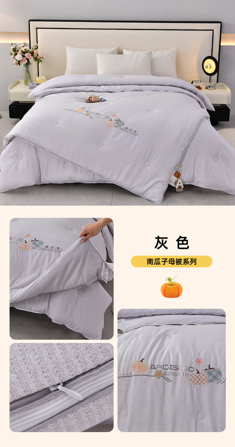商品名称:小牛席业 2025新款南瓜被-二合一子母被系列 南瓜-拉链二合一子母被(灰色)