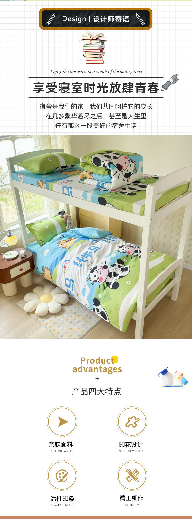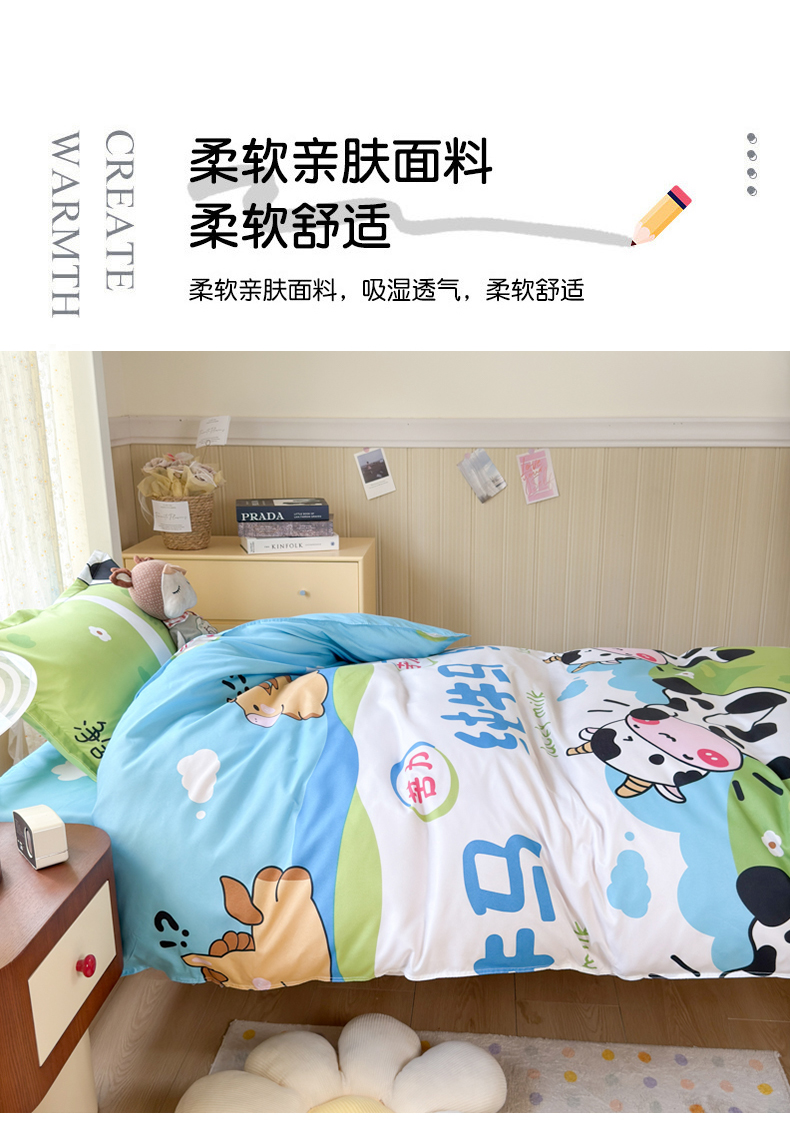 当前位置: 91家纺网 > 商品网购 > 床品套件 > 四件套 > 其它四件套 > 乐居坊 2025新款开学季亲肤棉透气印花芦荟棉四件套(宿舍床) 纯牛马