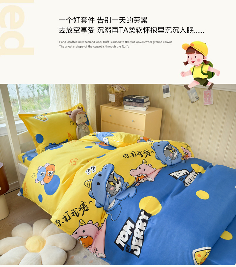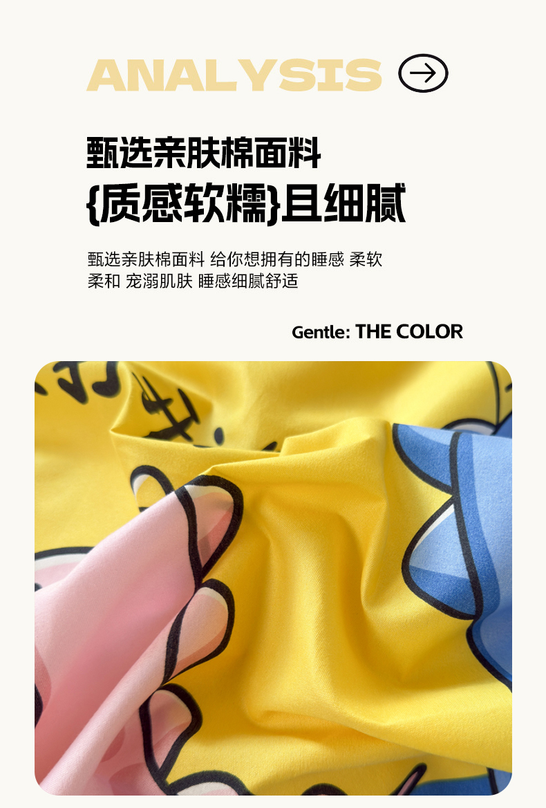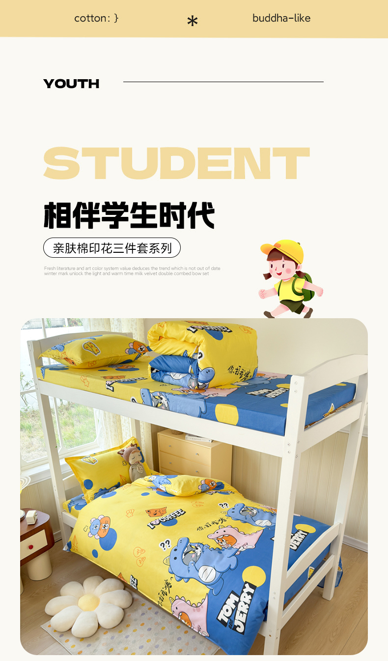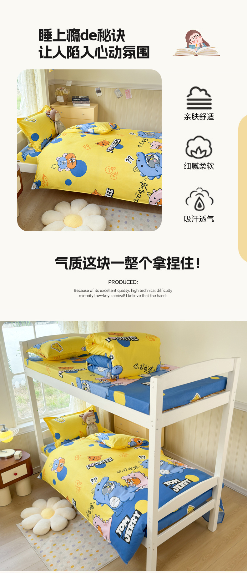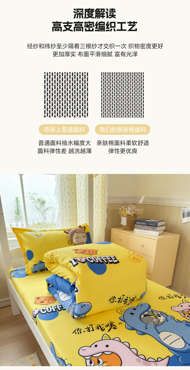 当前位置: 91家纺网 > 商品网购 > 床品套件 > 四件套 > 其它四件套 > 乐居坊 2025新款开学季亲肤棉透气印花芦荟棉四件套(宿舍床) 你打我噻