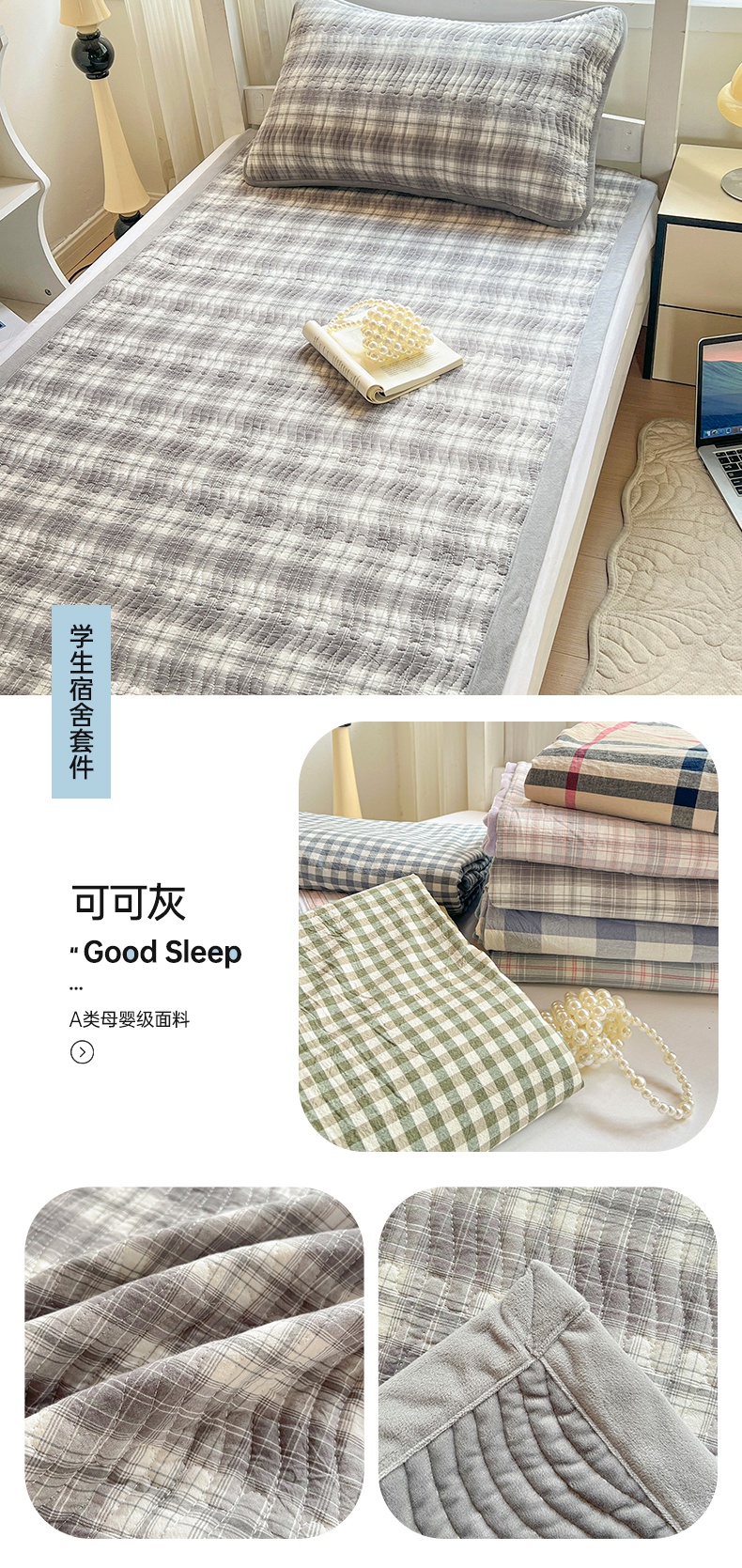 乐野家居 2025新款开学季 A类全棉水洗棉+宝宝绒学生床盖三件套(多功能被套) 灰中格