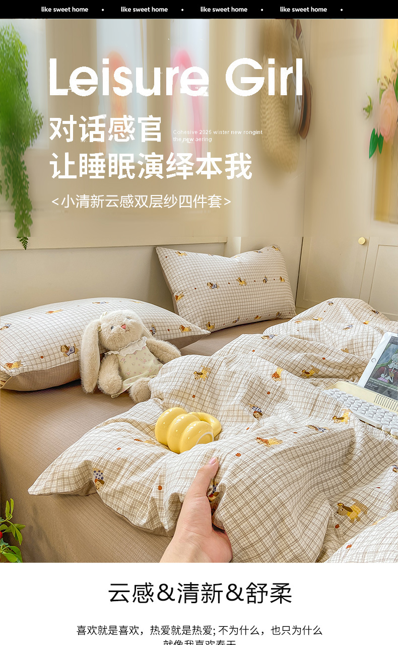 当前位置: 91家纺网 > 商品网购 > 床品套件 > 四件套 > 双层纱四件套 > 夜笙家纺 2025秋冬网红爆款110克水洗棉高克重皱皱纱(提供买家秀) 卡皮巴拉-咖