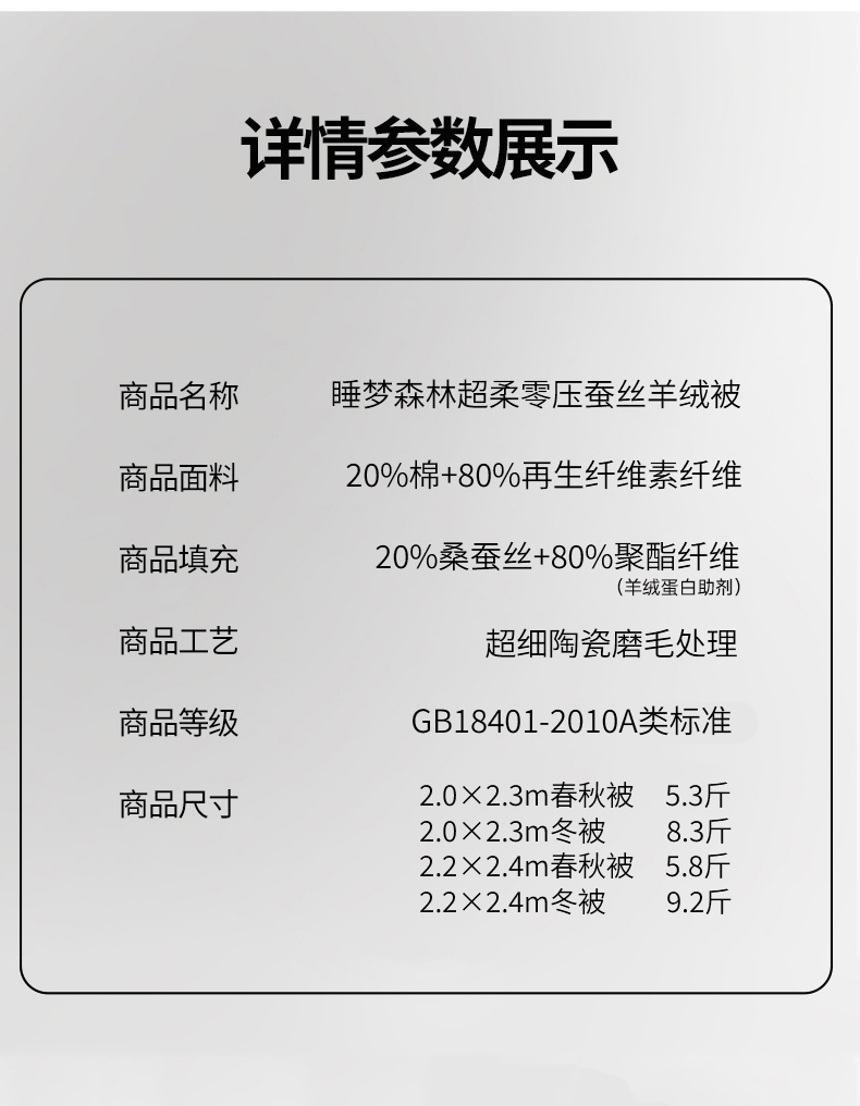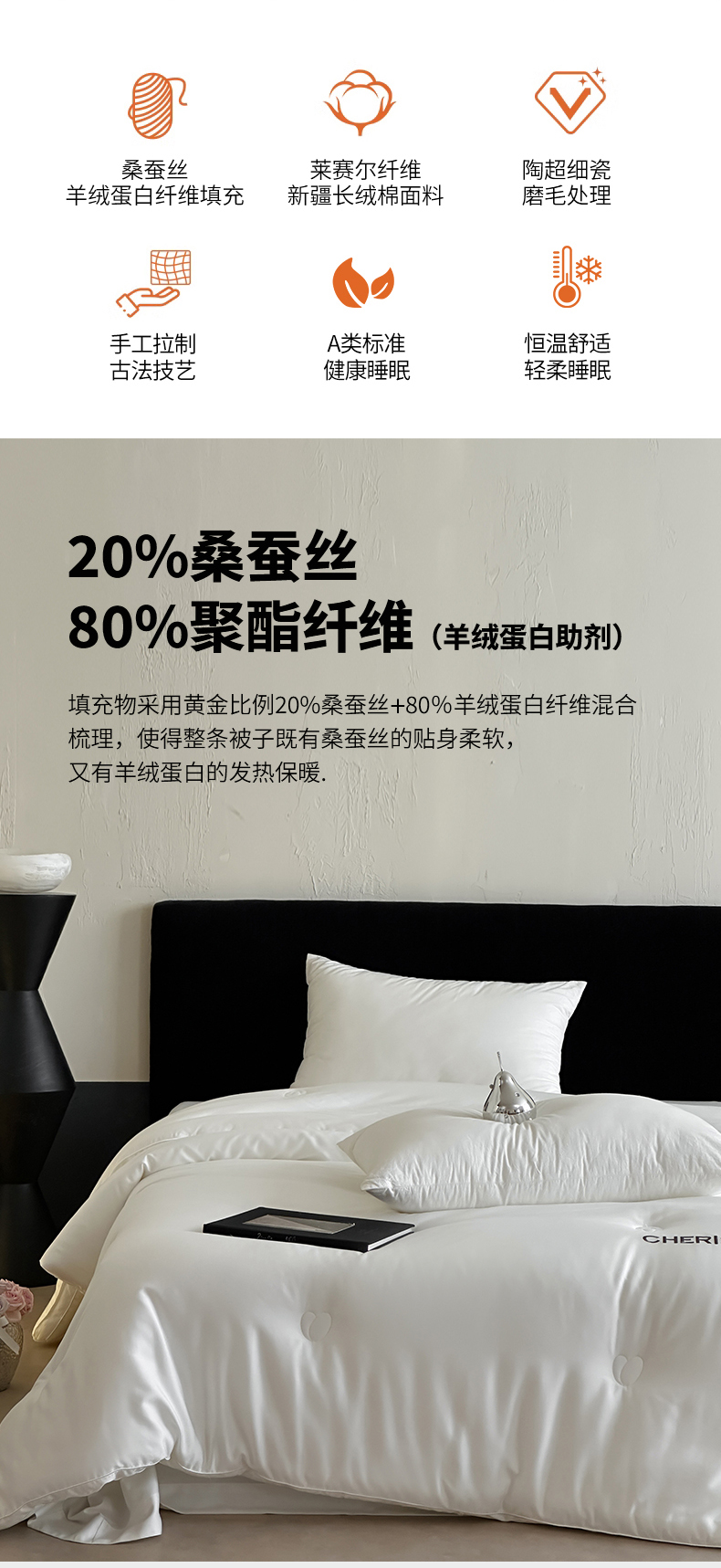 商品名称:【极简主义】傲蕾睡梦森林天丝棉混纺绣花款蚕丝羊绒冬被春秋被被芯高端被子