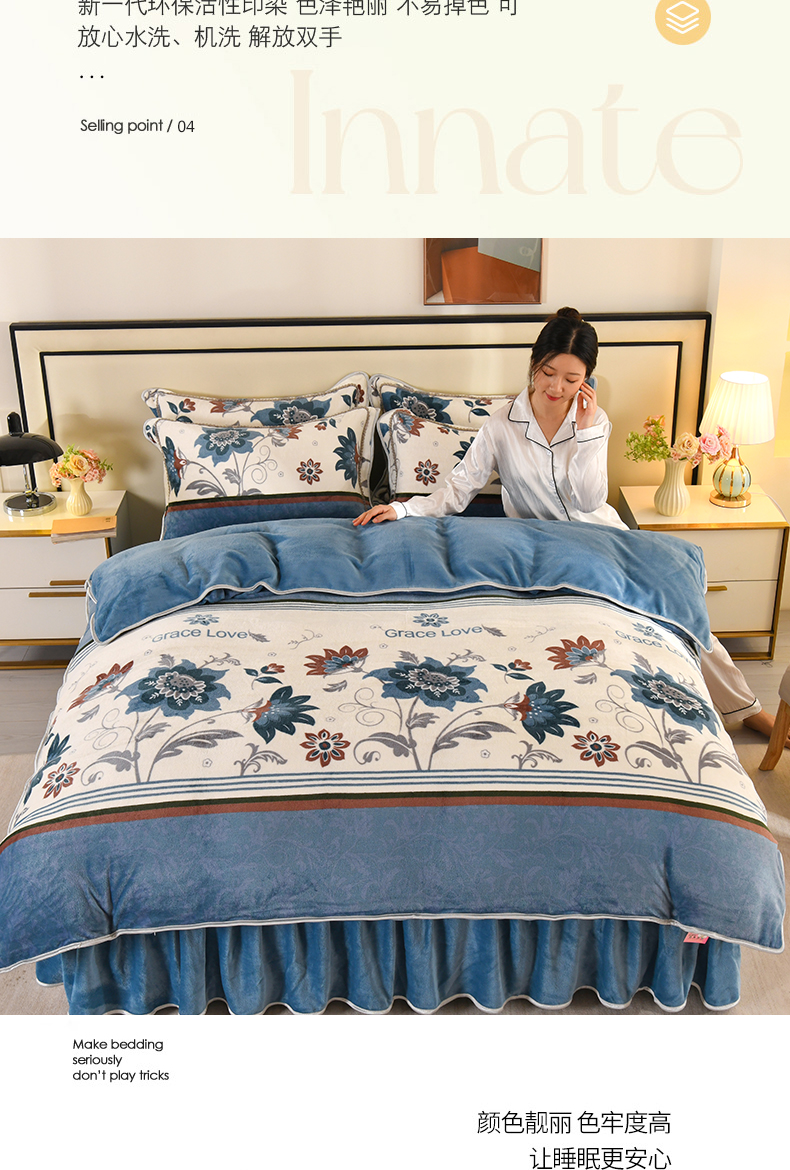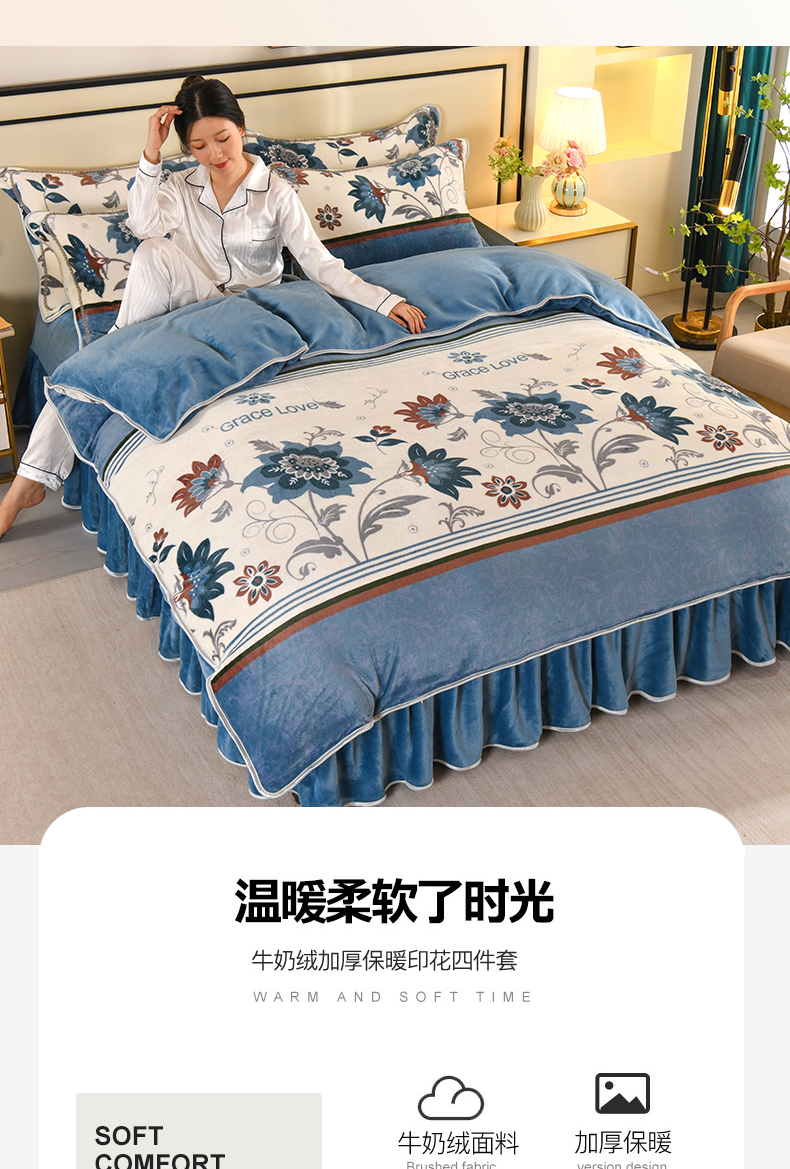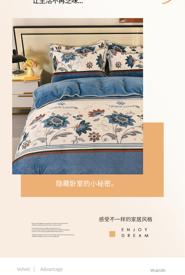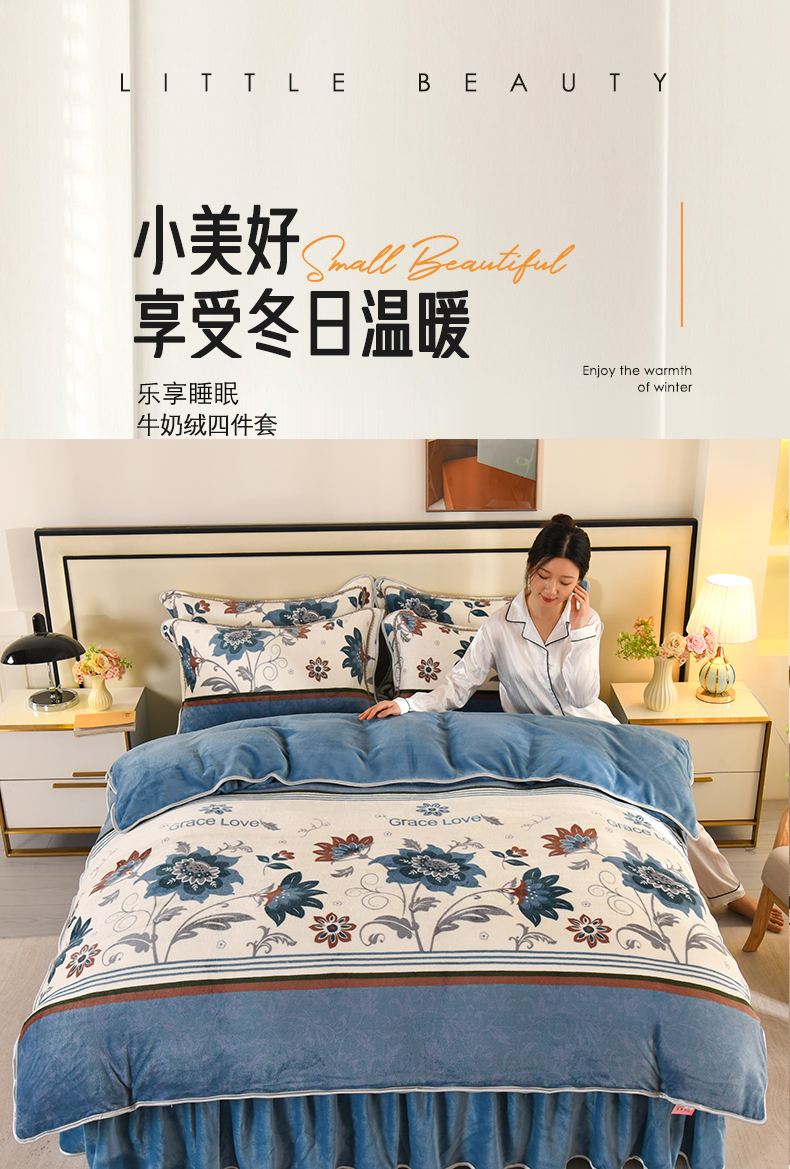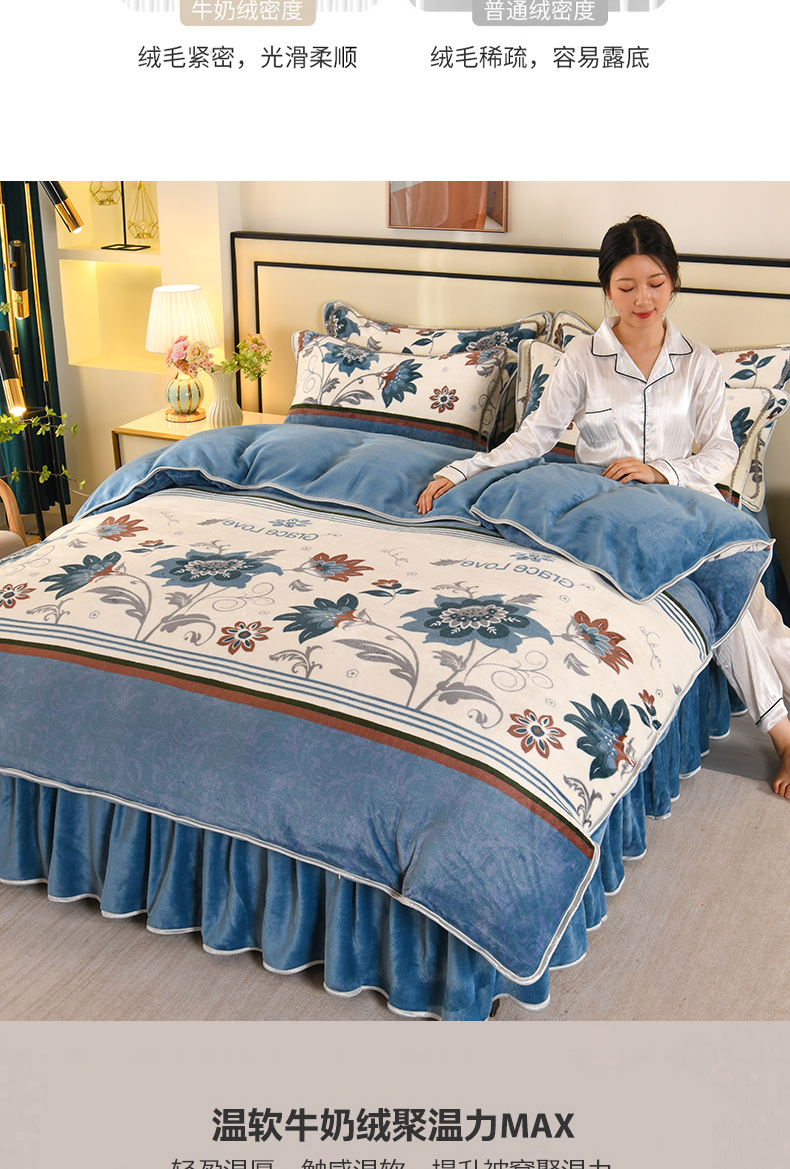 当前位置: 91家纺网 > 商品网购 > 床品套件 > 四件套 > 牛奶绒四件套 > 莱凯家纺 2025新款牛奶绒四件套保暖加厚金貂绒套件曼珠沙华