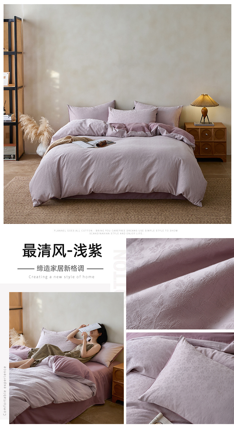 当前位置: 91家纺网 > 商品网购 > 床品套件 > 四件套 > 普通磨毛四件套 > 禾时 2025新款60s轻奢提花磨毛四件套-最清风 最清风-浅紫