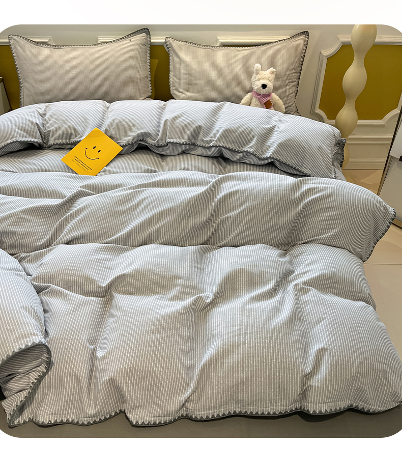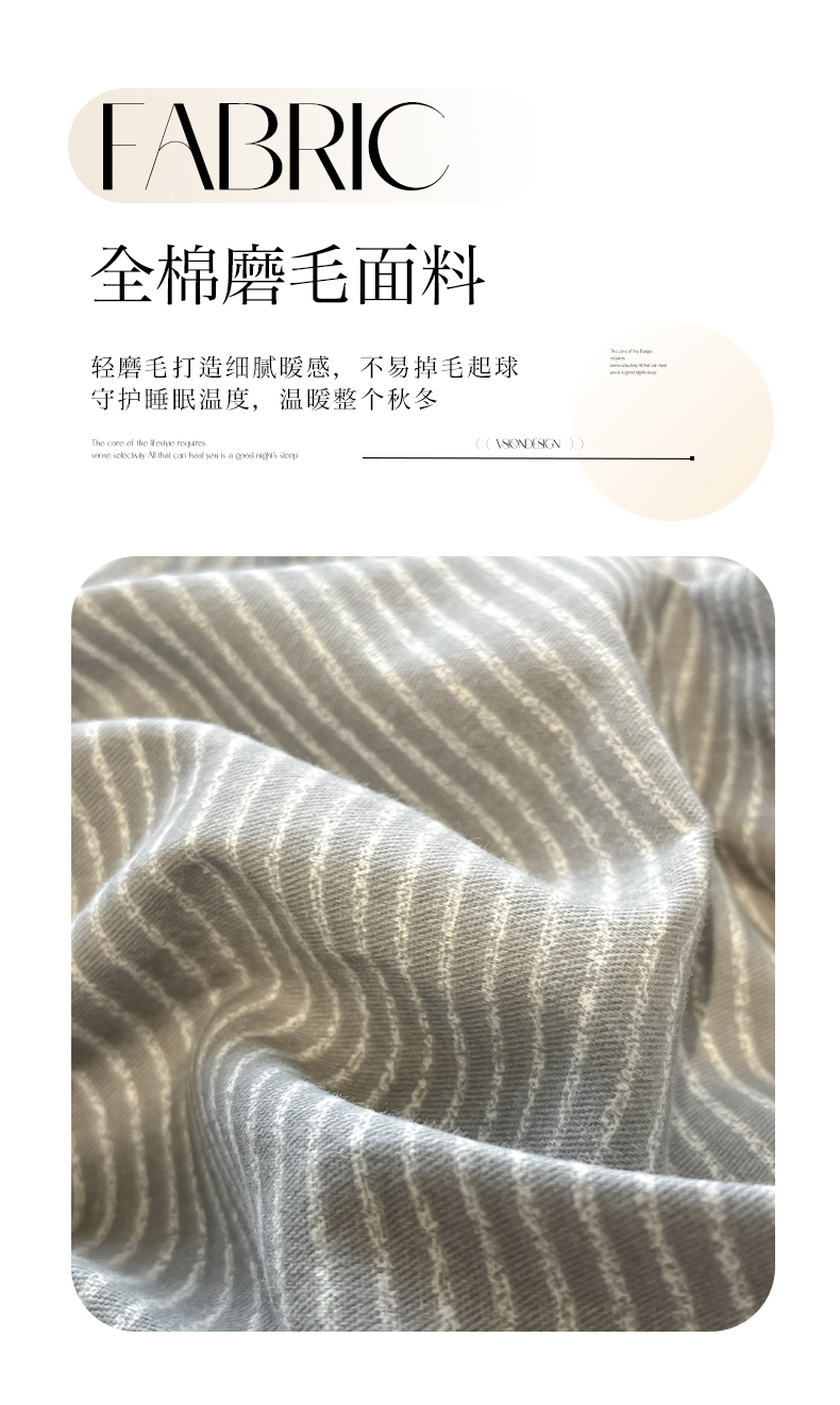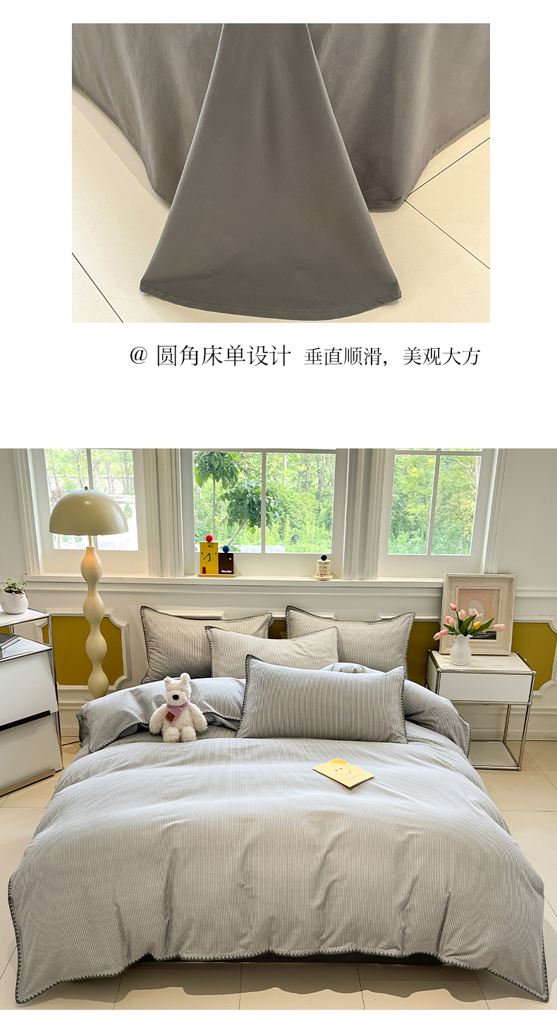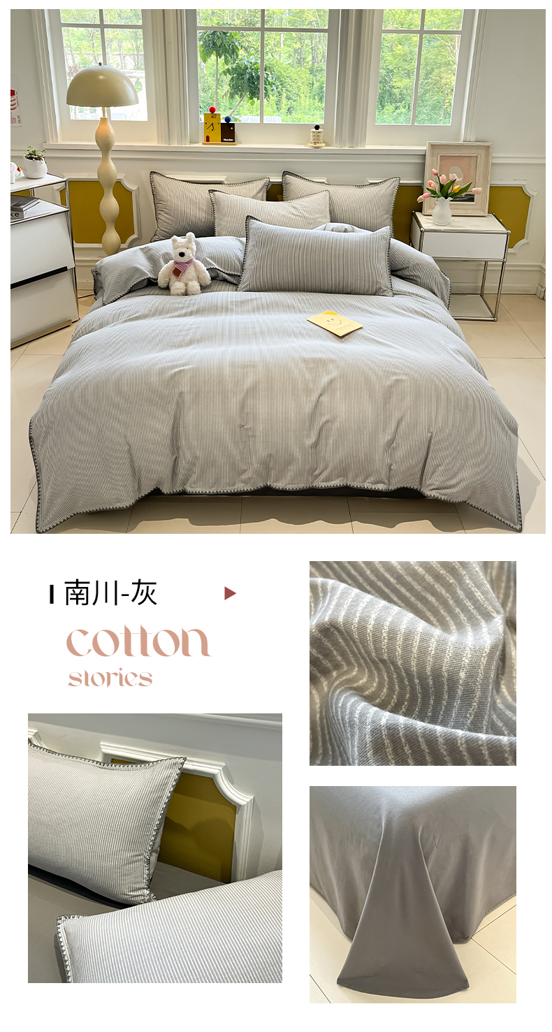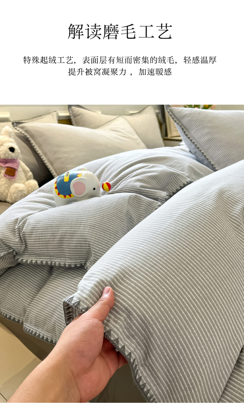 商品名称:禧澜庭 2025新款秋冬全棉纯棉磨毛贝壳边三角针三四件套 南川-灰