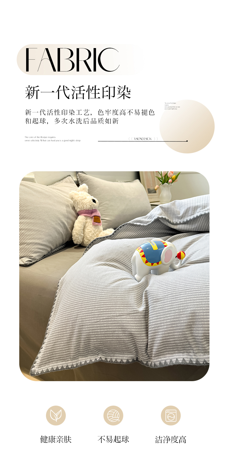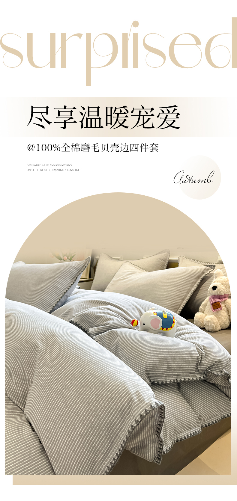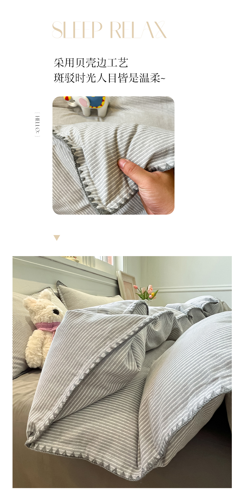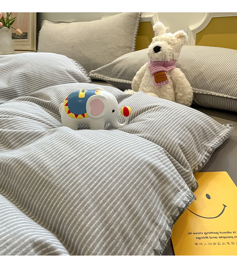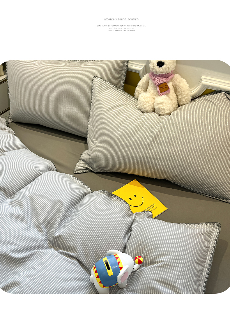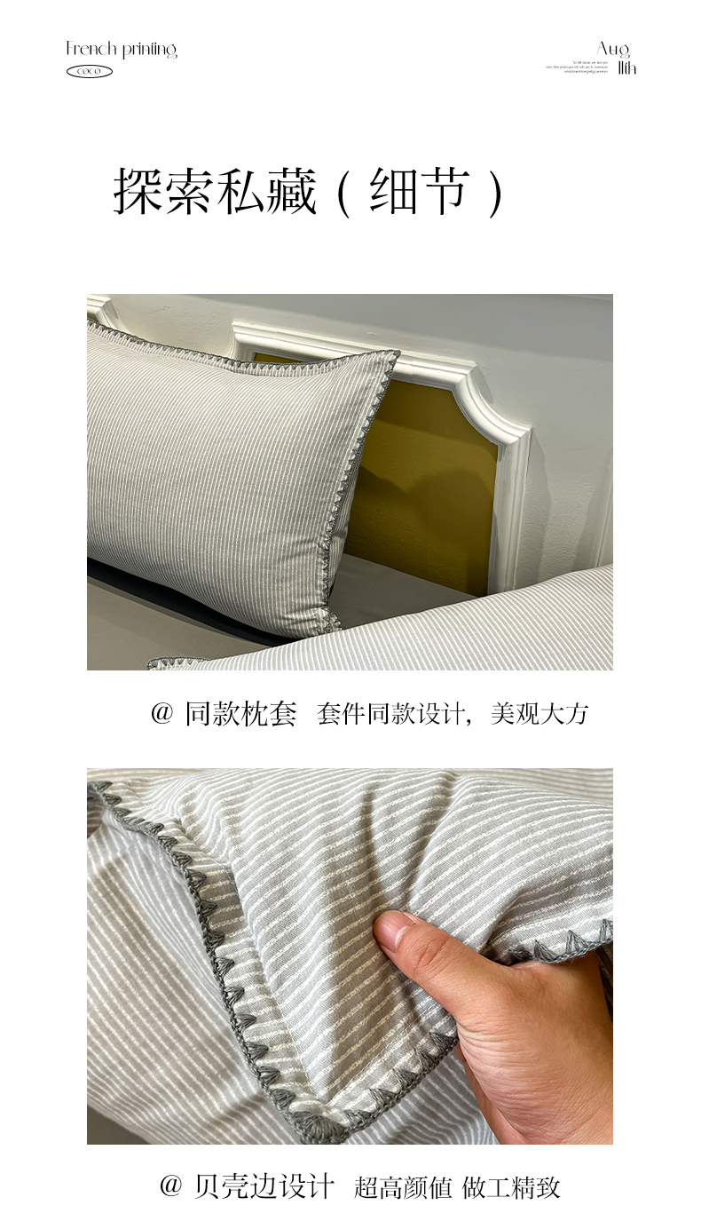 商品名称:禧澜庭 2025新款秋冬全棉纯棉磨毛贝壳边三角针三四件套 南川-灰