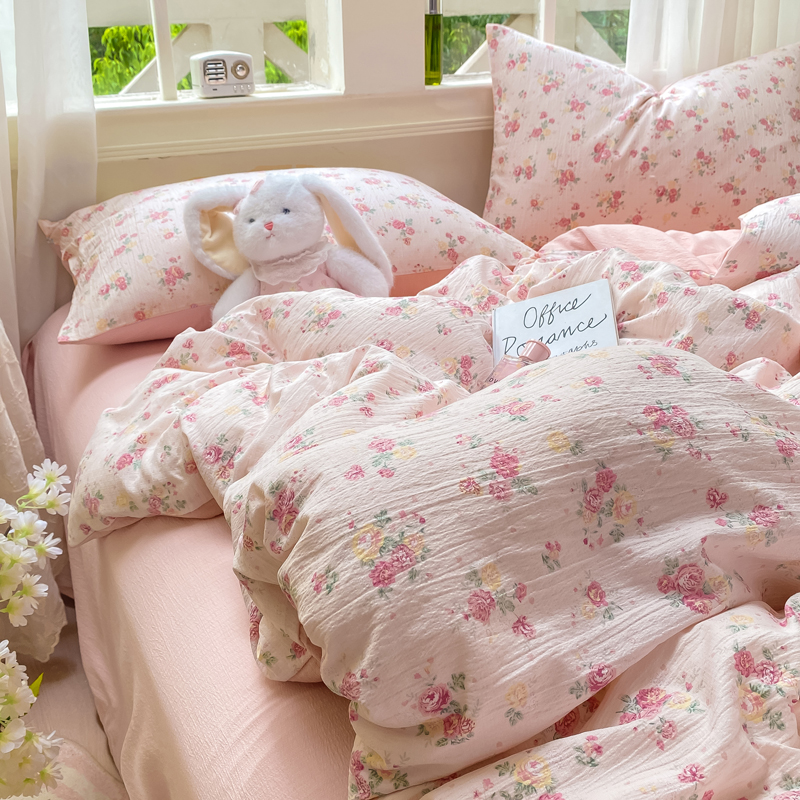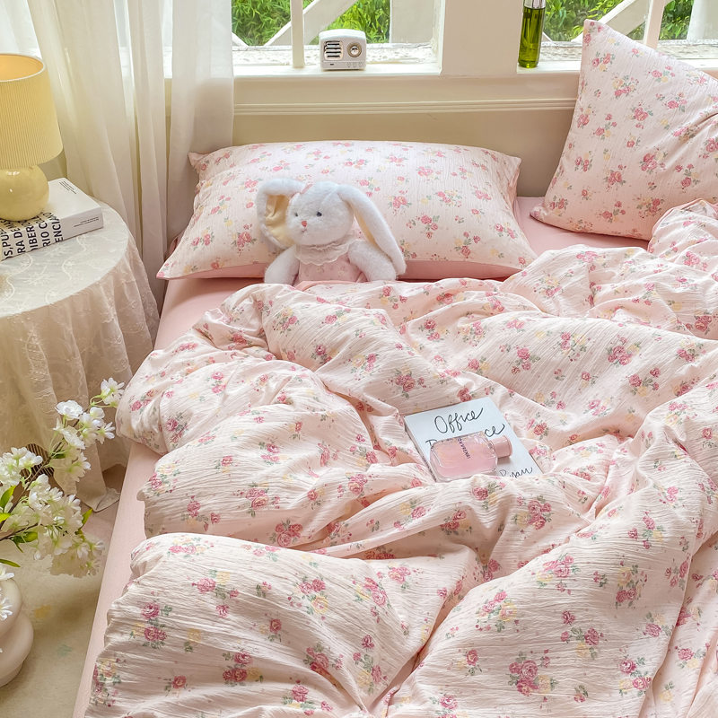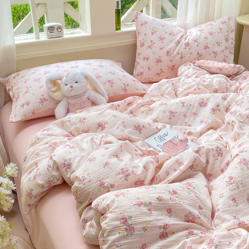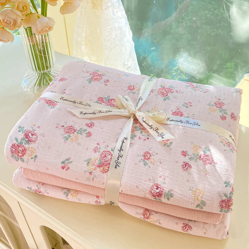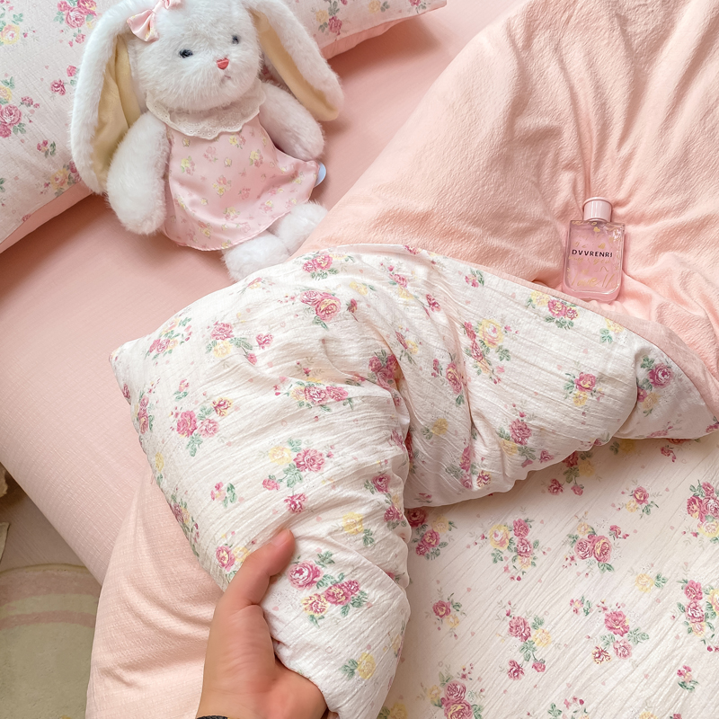 商品名称:朵朵家纺 2025新款云感提花双层纱印花单品被套 玫瑰庄园