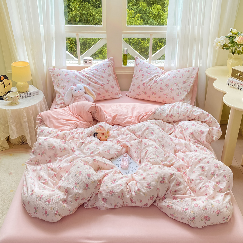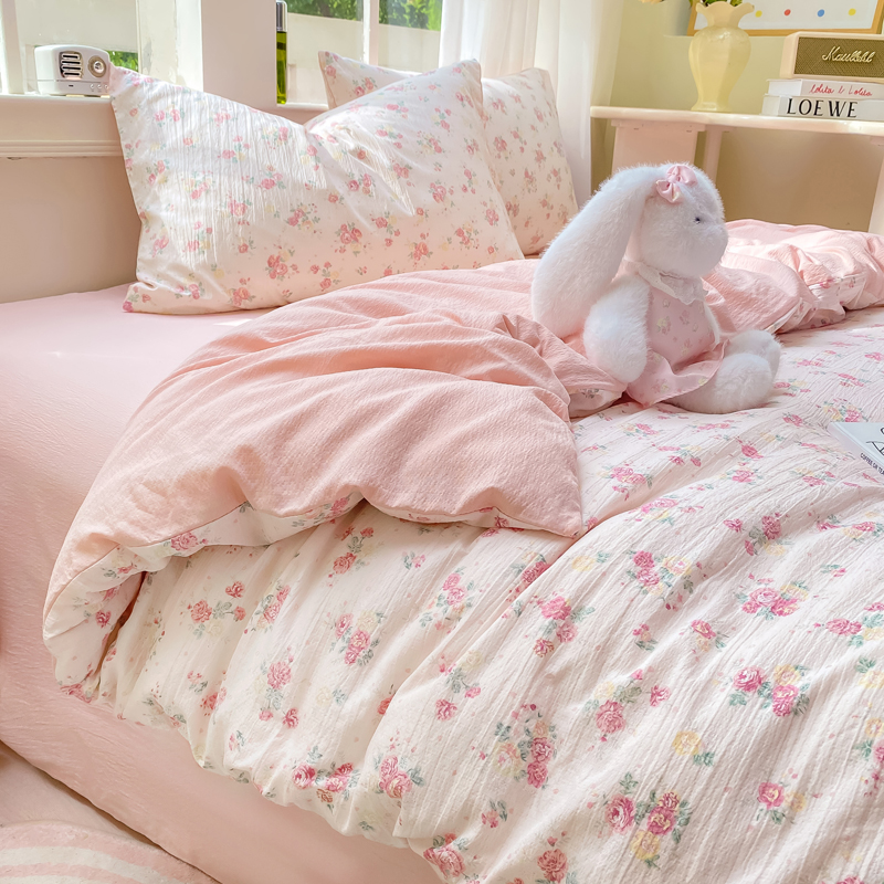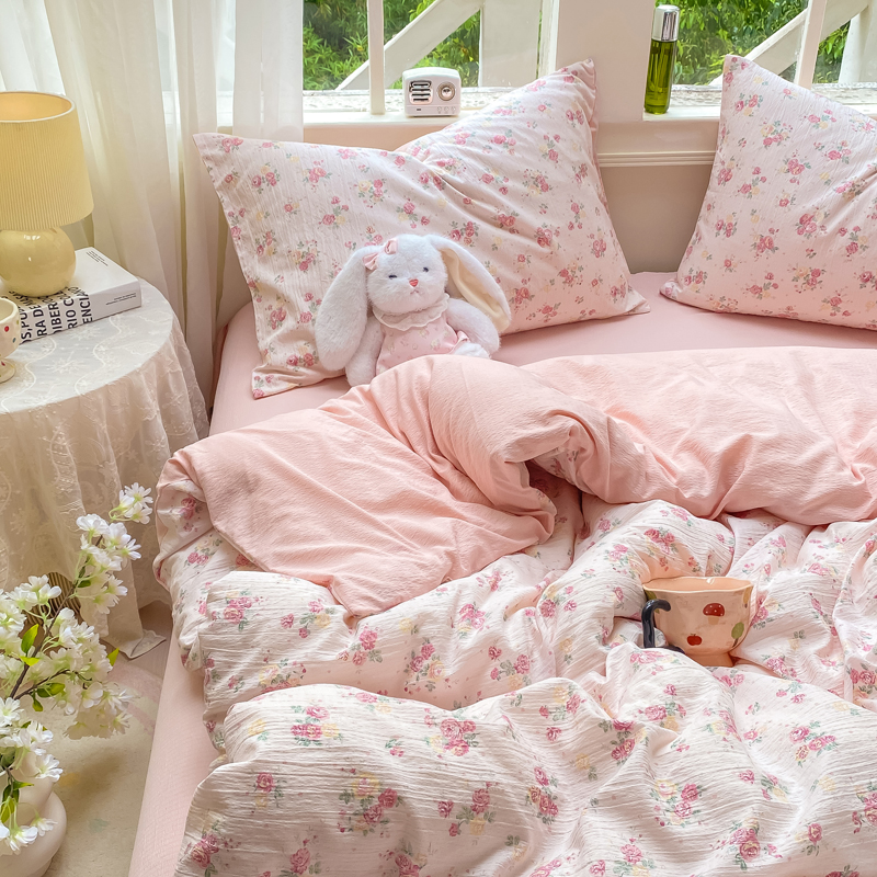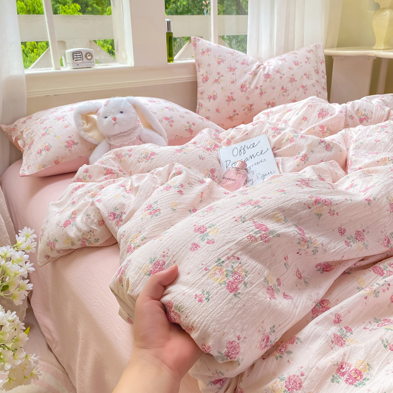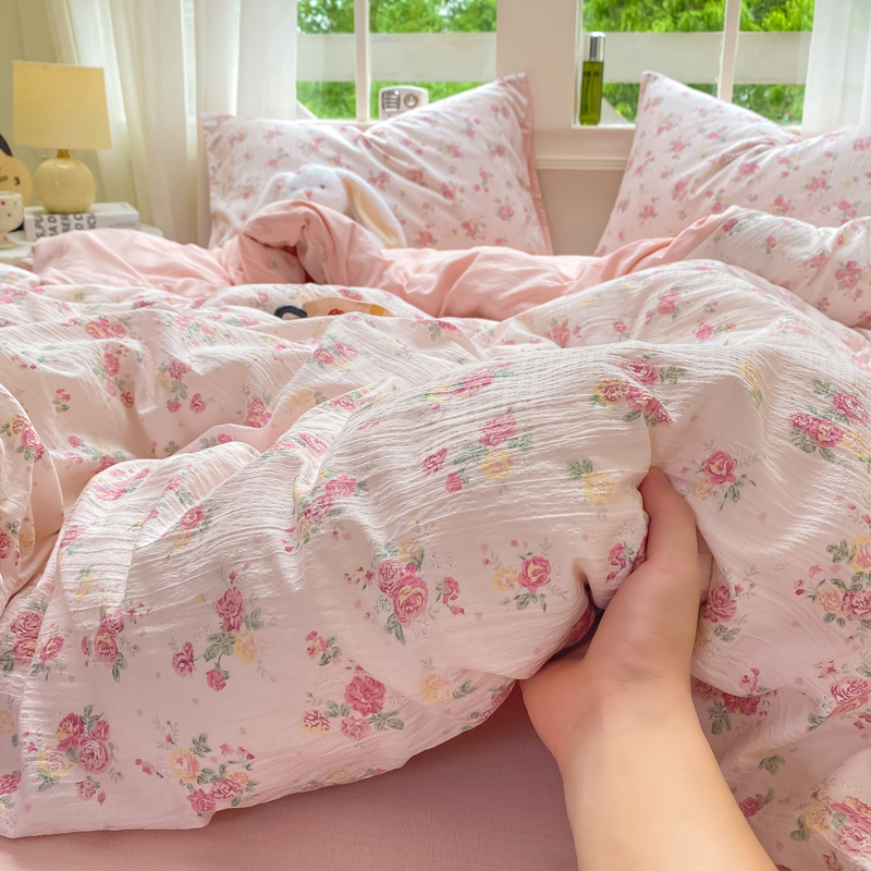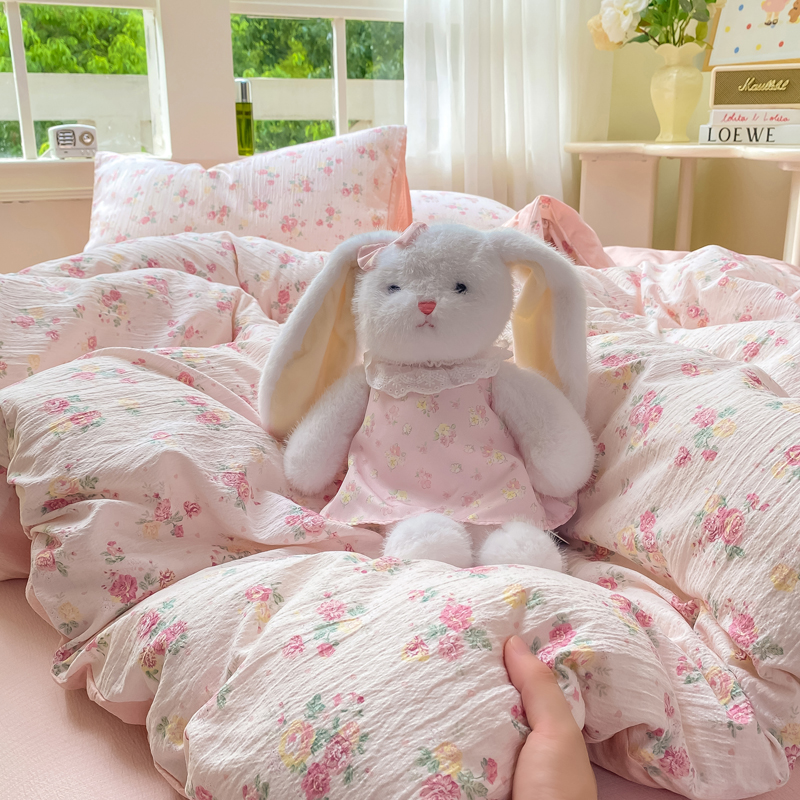 商品名称:朵朵家纺 2025新款云感提花双层纱印花单品被套 玫瑰庄园