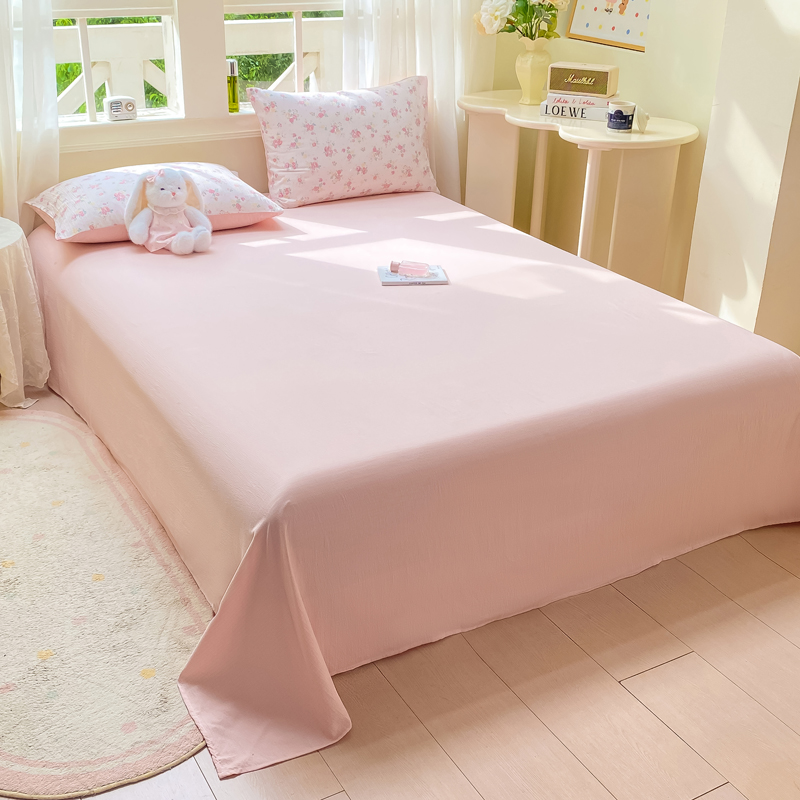 (总)朵朵家纺 2025新款云感提花双层纱纯色单床单被单(可定做尺寸),卡其,果绿,奶黄,浅灰,雾蓝,香芋紫,樱花粉