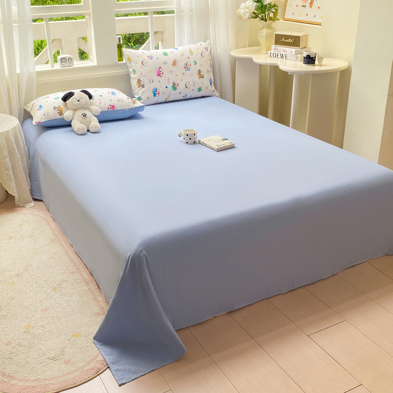 (总)朵朵家纺 2025新款云感提花双层纱纯色单床单被单(可定做尺寸),卡其,果绿,奶黄,浅灰,雾蓝,香芋紫,樱花粉