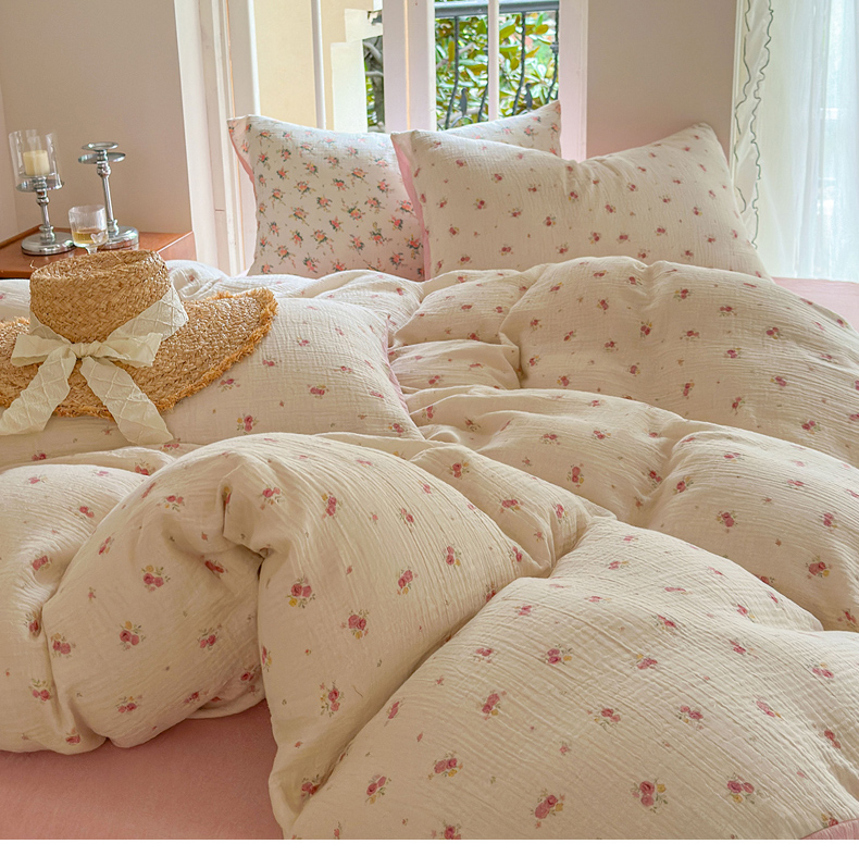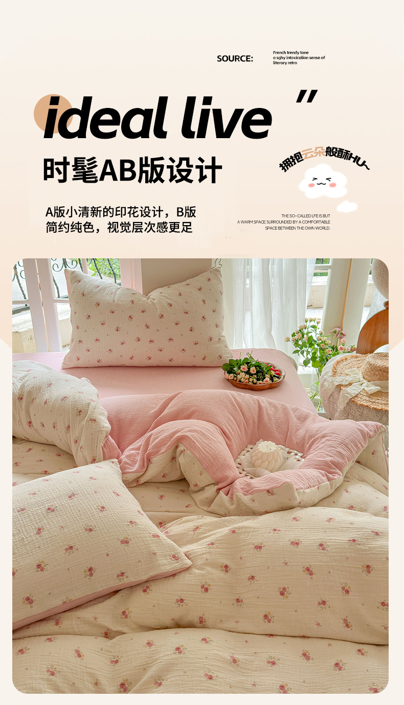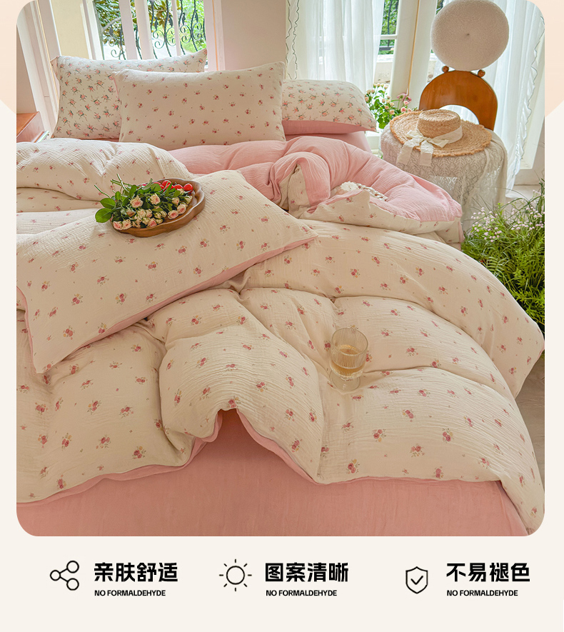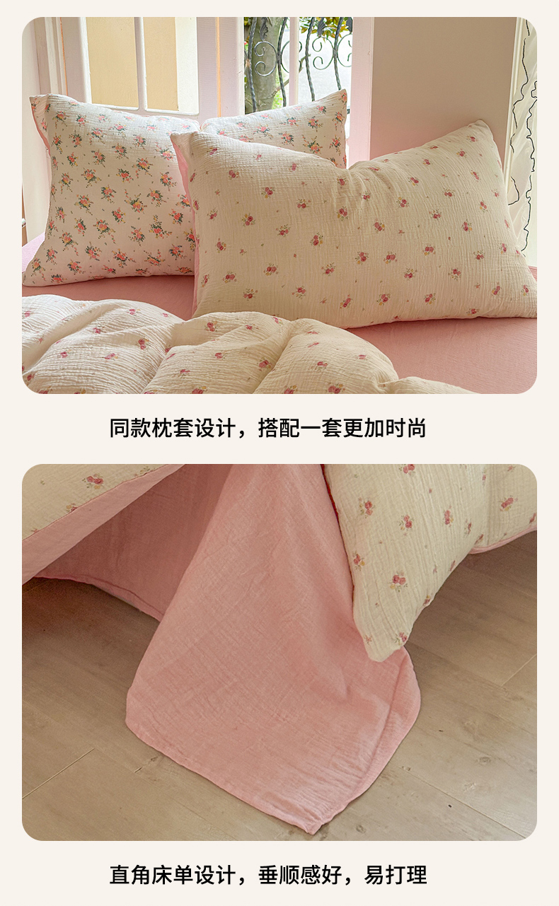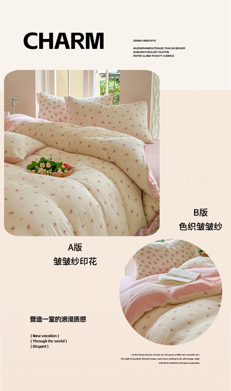 木楌家居 2025春夏新品全棉A类皱皱纱印花四件套 璎珞
