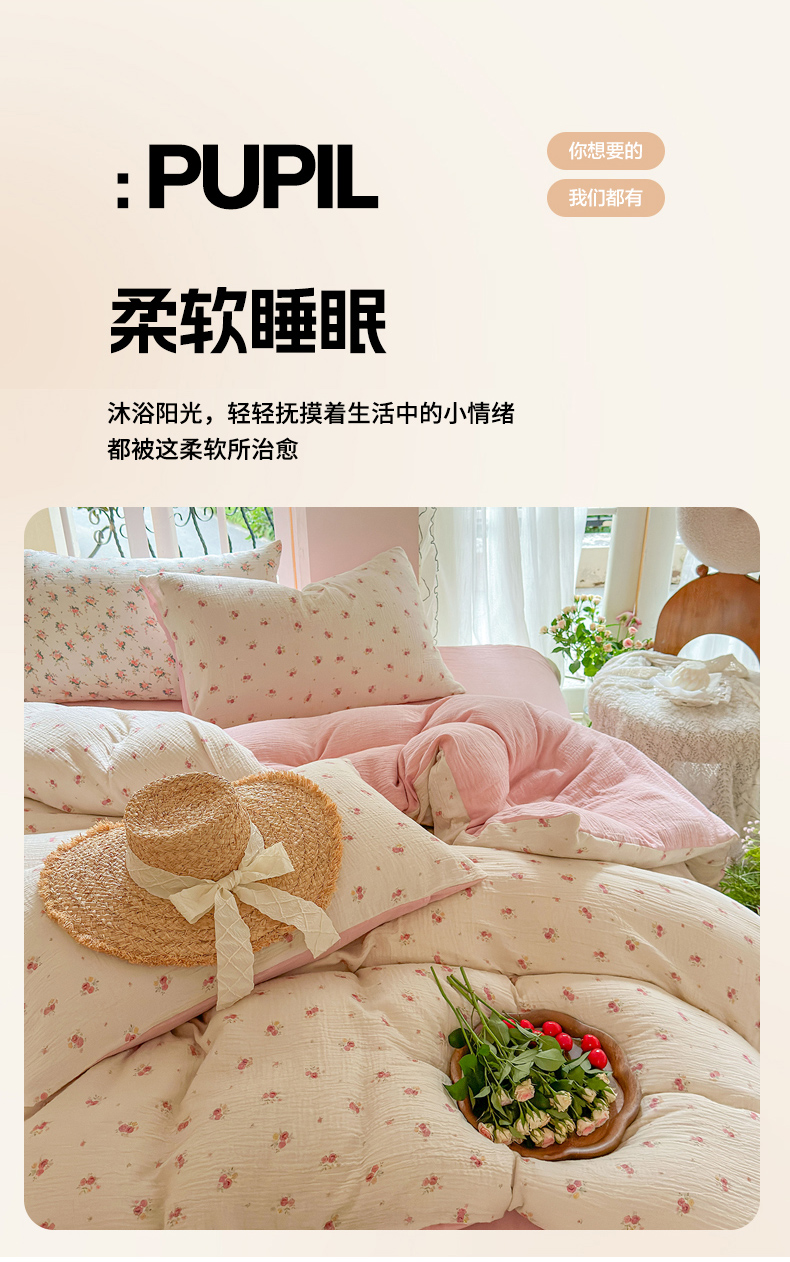 商品名称:木楌家居 2025春夏新品全棉A类皱皱纱印花四件套 璎珞