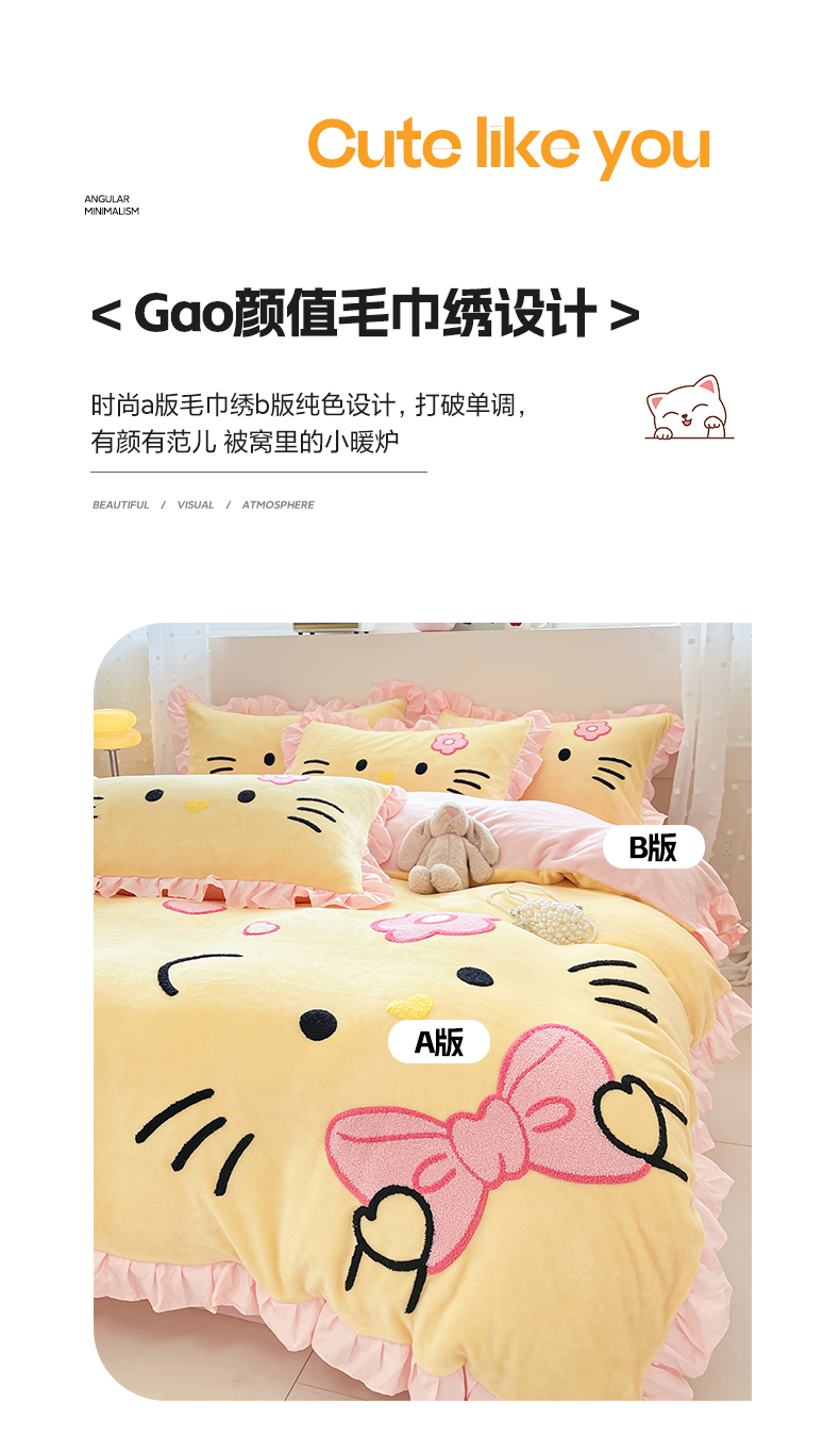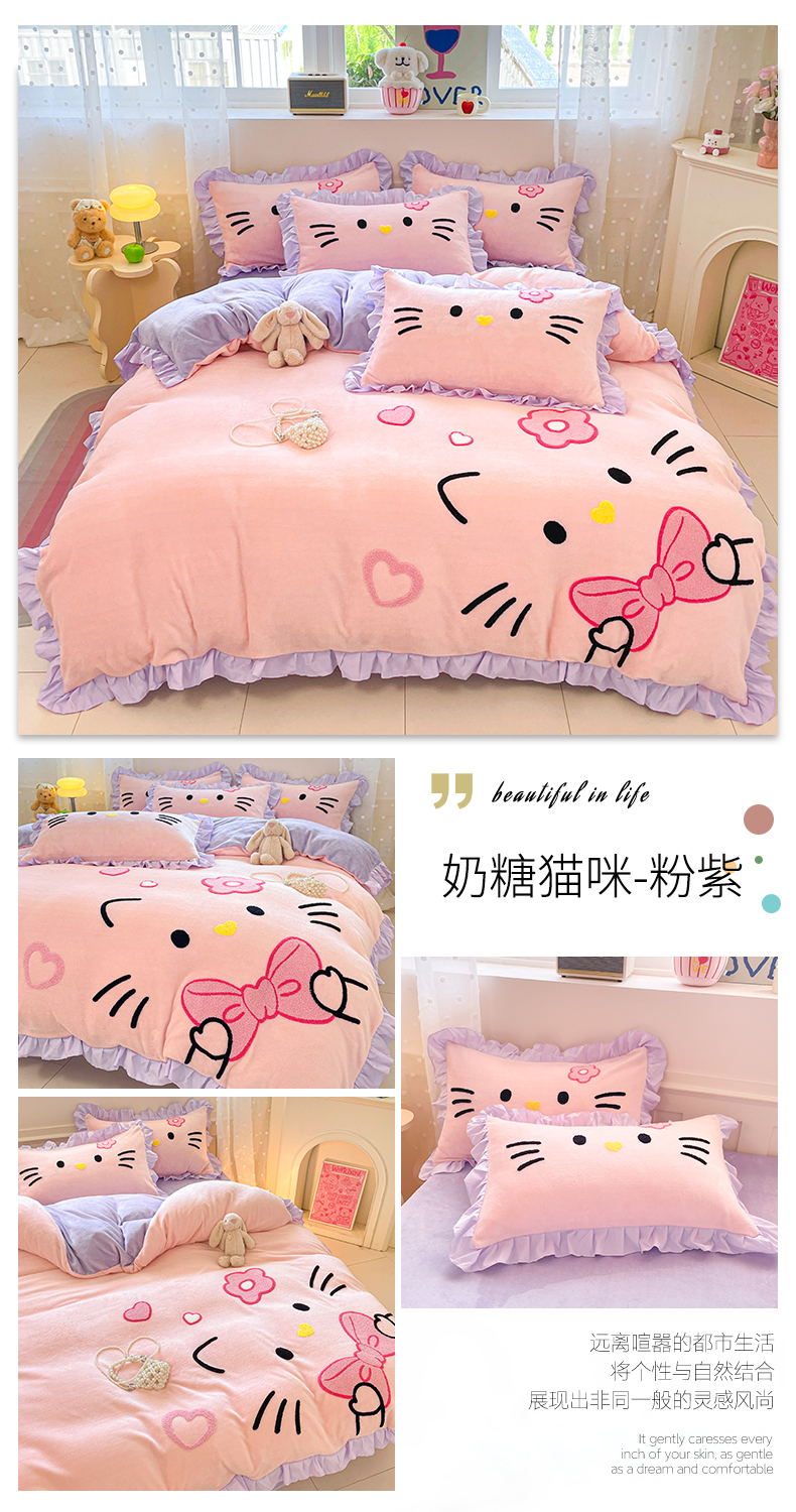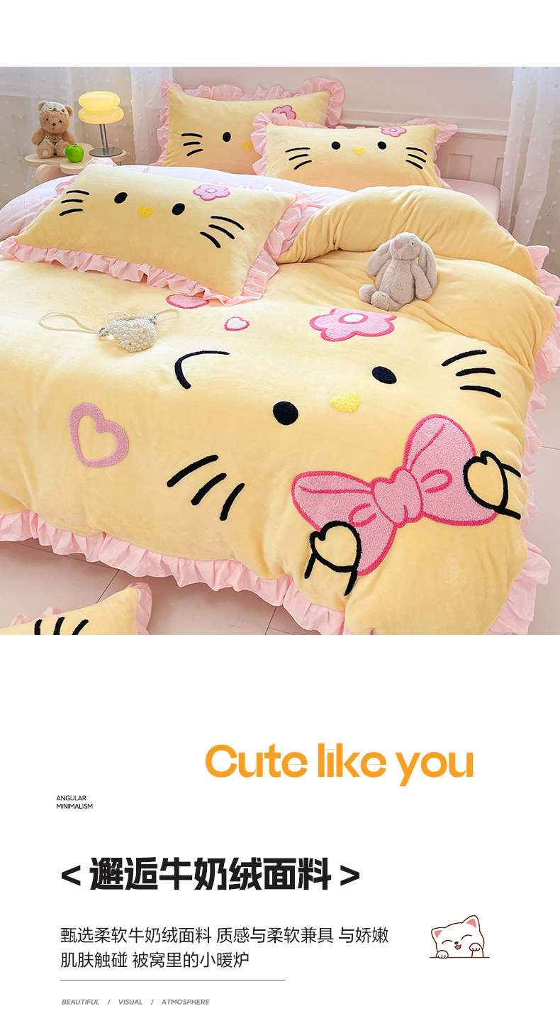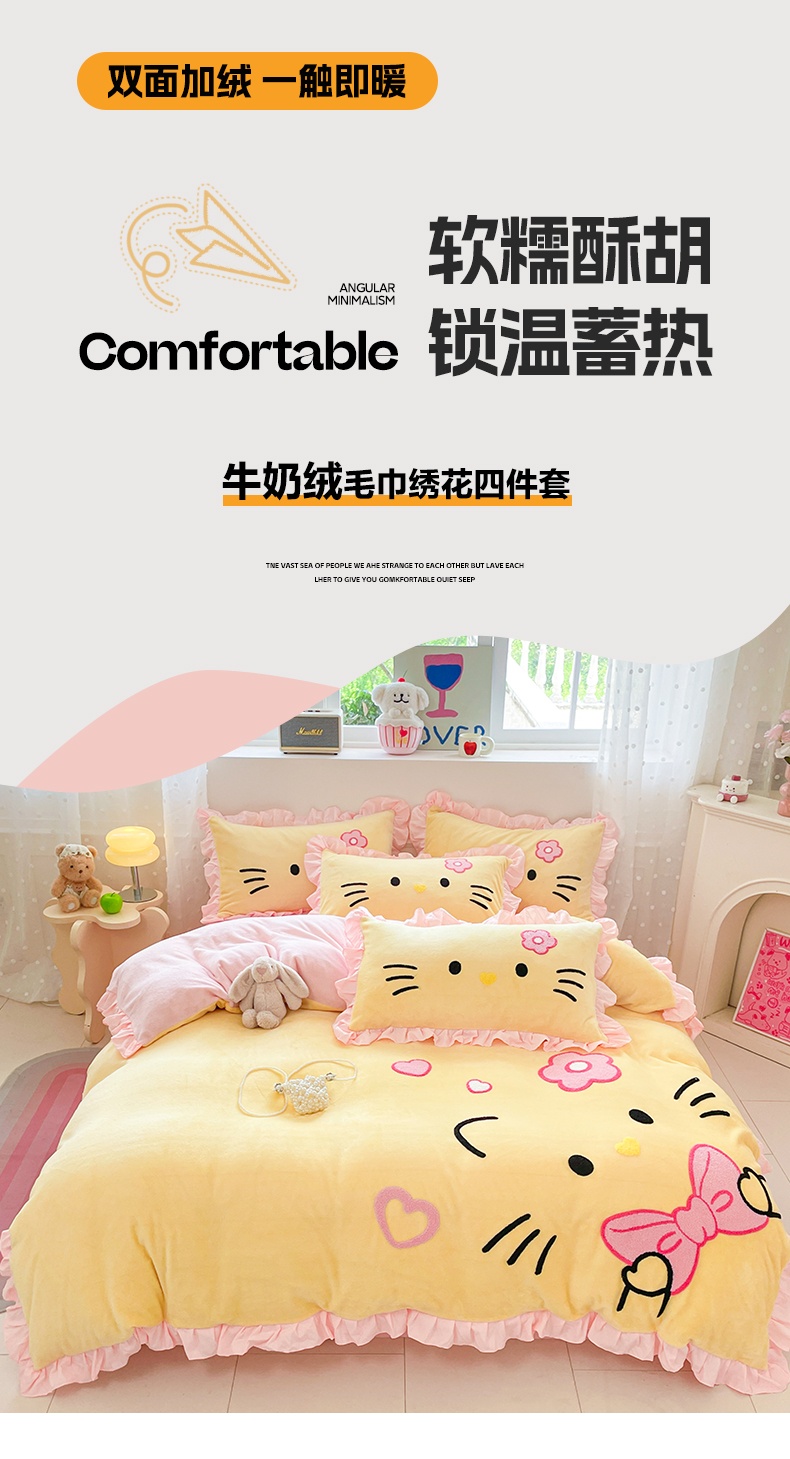 当前位置: 91家纺网 > 商品网购 > 床品套件 > 四件套 > 牛奶绒四件套 > 泉欣家纺 2025新款牛奶绒公主风毛巾绣花床单款床笠款四件套三件套奶糖猫咪(专版) 奶糖猫咪-黄粉