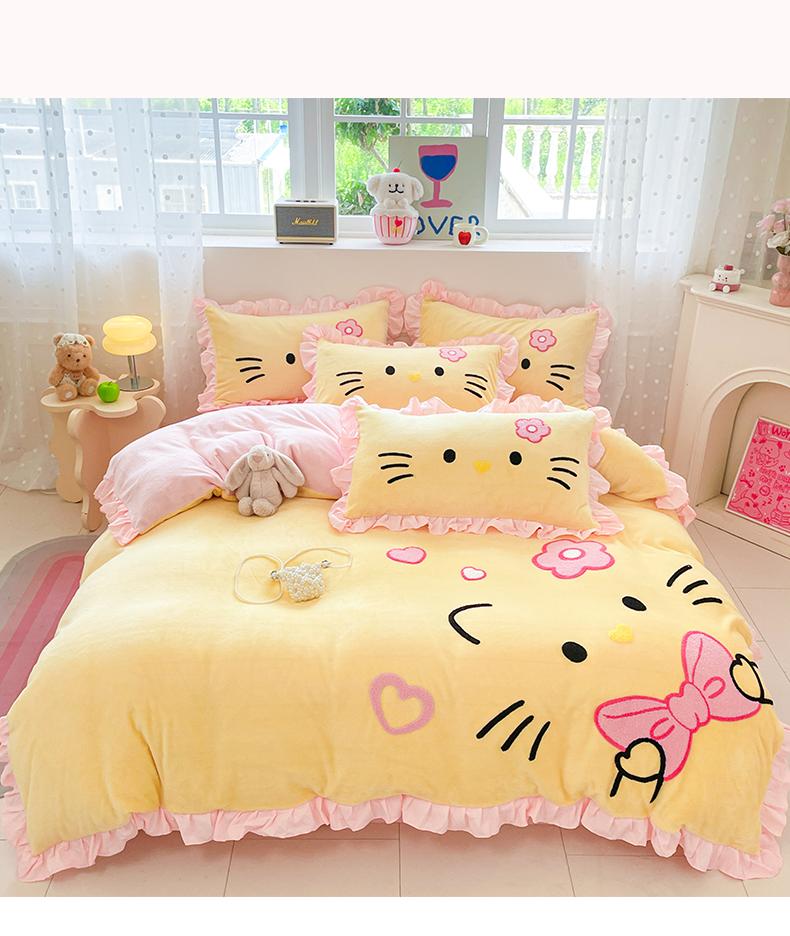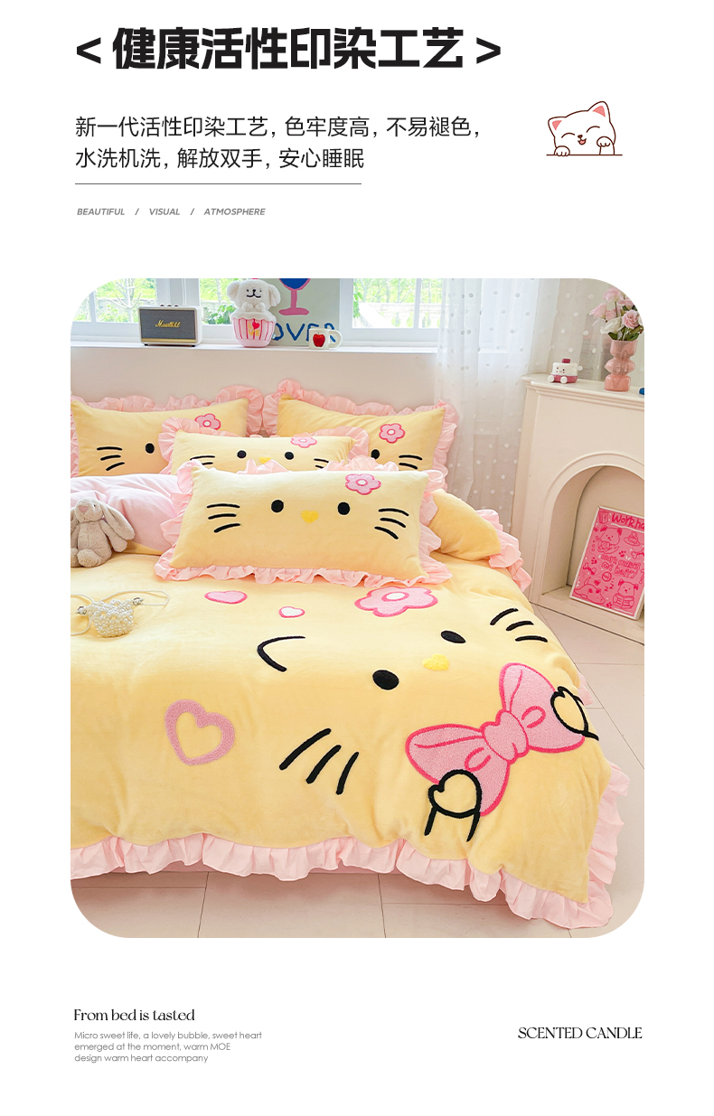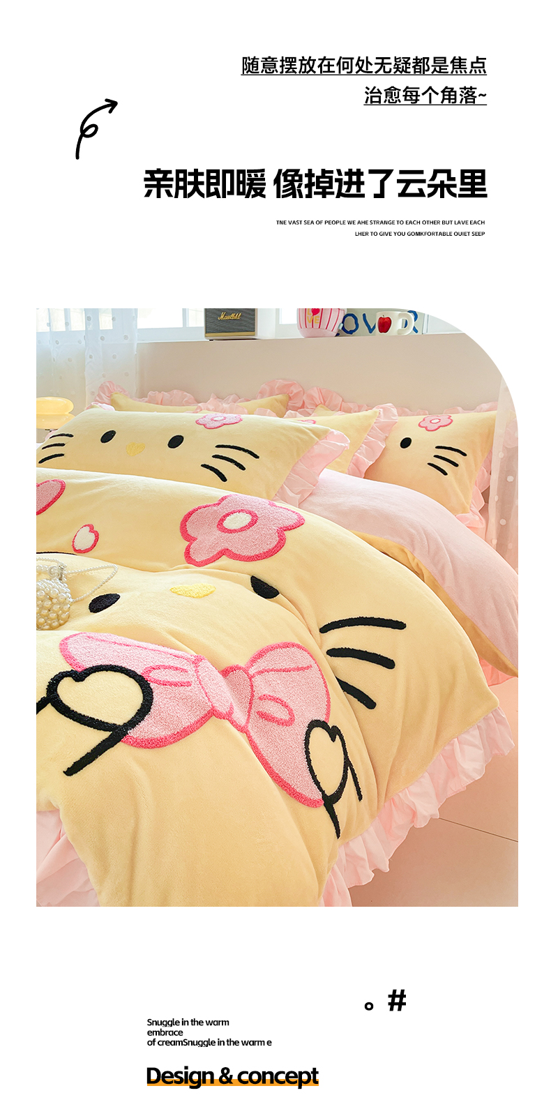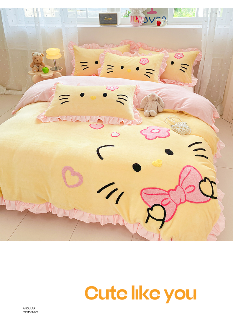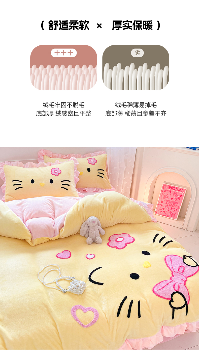 当前位置: 91家纺网 > 商品网购 > 床品套件 > 四件套 > 牛奶绒四件套 > 泉欣家纺 2025新款牛奶绒公主风毛巾绣花床单款床笠款四件套三件套奶糖猫咪(专版) 奶糖猫咪-黄粉