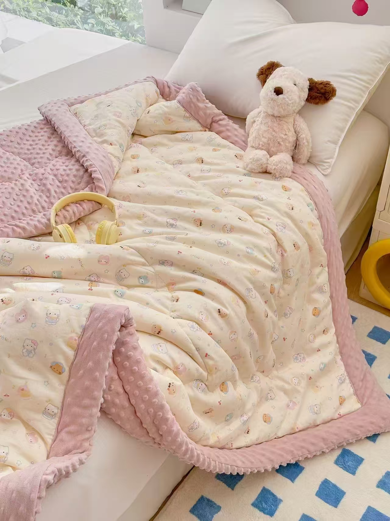 (总)宜梦家居 2025新款獭兔绒三层夹棉加厚豆豆棉被子被芯,抱抱熊,蛋糕猫,蝴蝶,花草狗,卡皮巴拉,蓝狗,蓝色动物,美乐蒂,奶牛,南瓜,星月,熊猫,郁金香,紫花