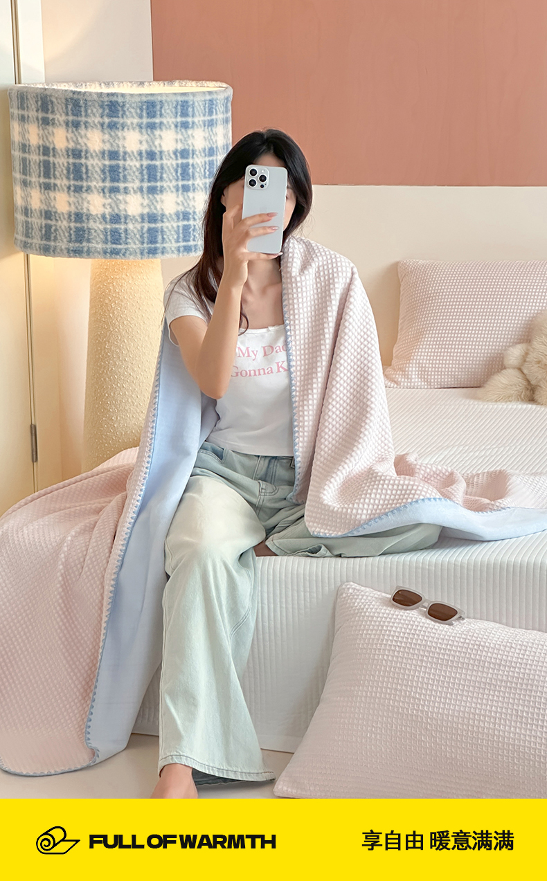 当前位置: 91家纺网 > 商品网购 > 毛毯休闲毯绒毯 > 毛毯 > 桃子家居 2025新款A类ins菠萝毯全消光烂花撞色华夫格三角针工艺加厚牛奶绒毛毯多功能毯 组合图仅供展示不可下单