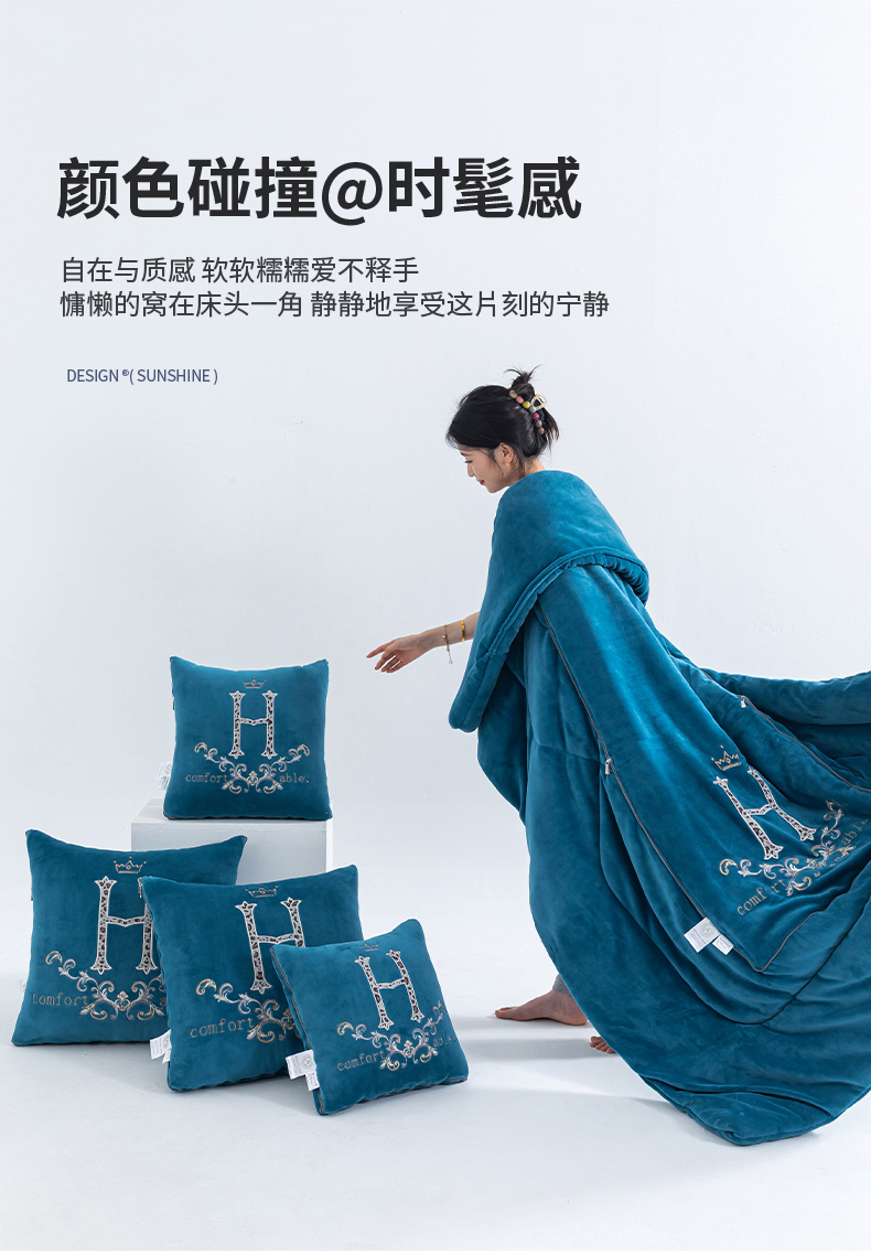 (总)照世家纺 2025新款牛奶绒简约复古款抱枕被,草绿,淡粉,千代紫,深灰,深蓝,天兰,香芋紫,杏粉