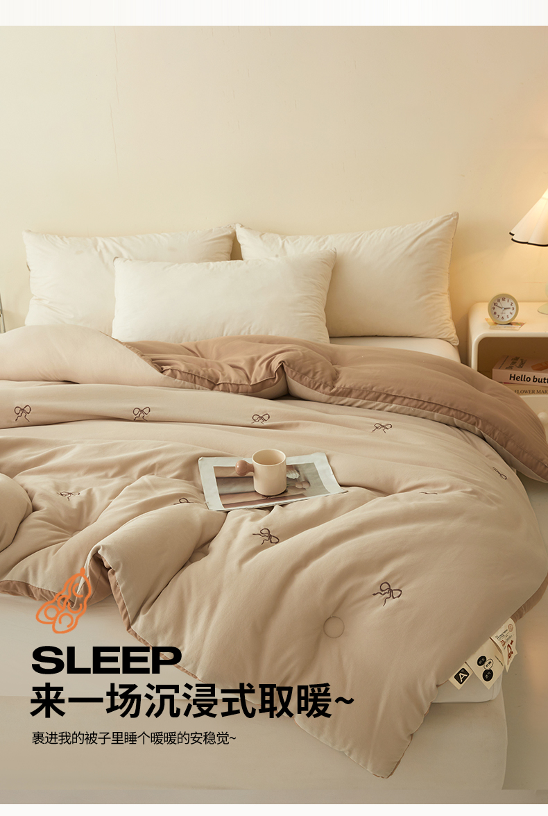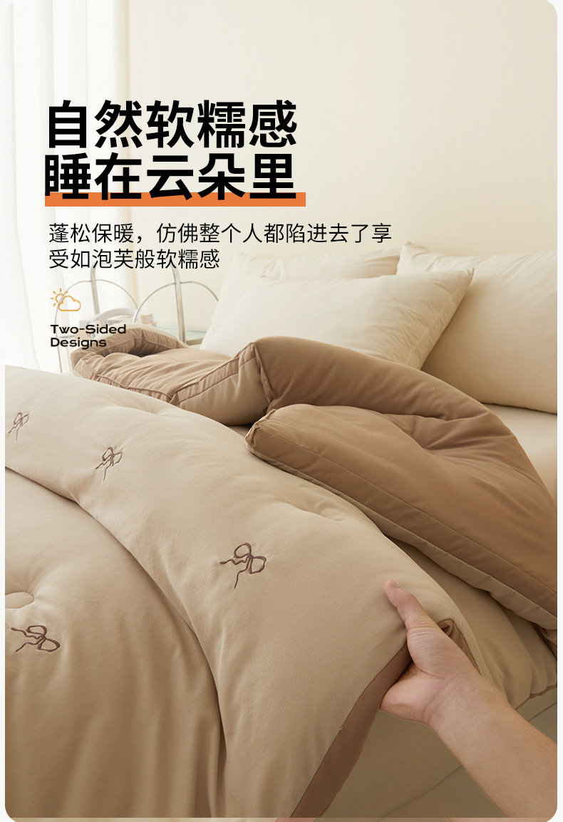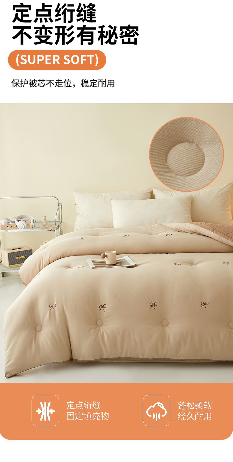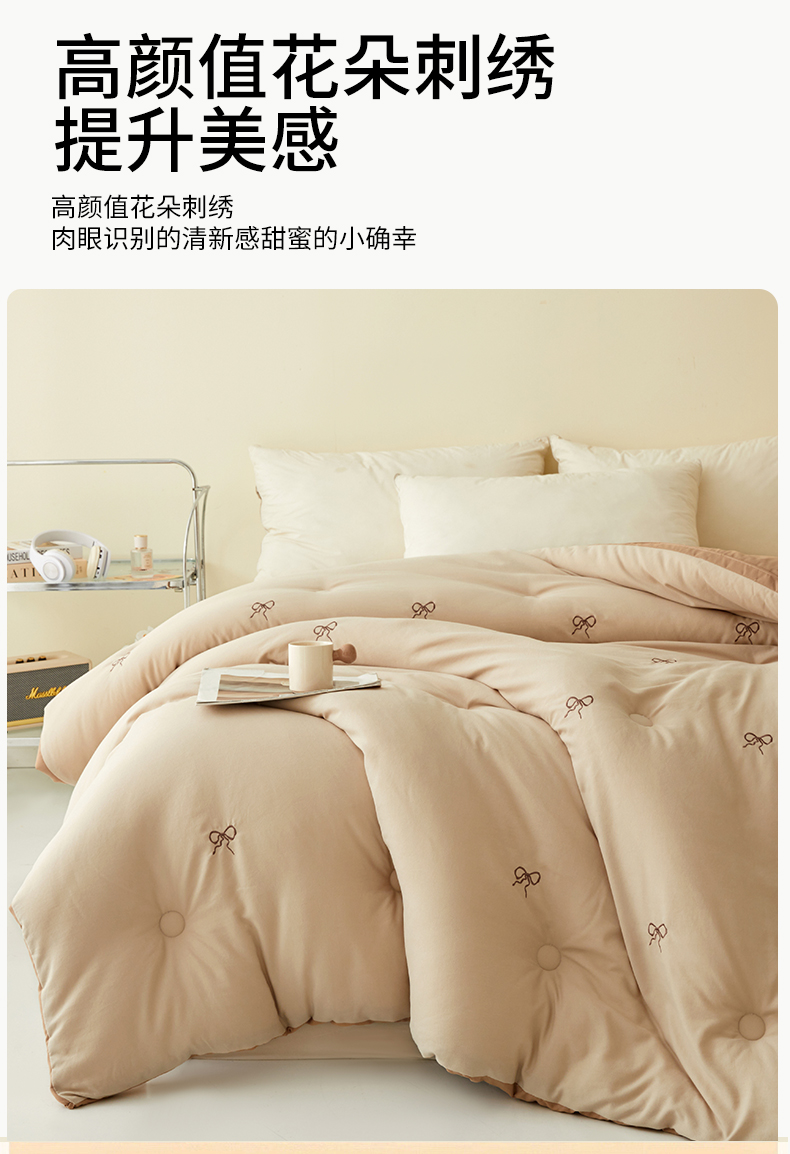 • 91家纺网 家纺一手货源 找家纺 维洋家纺 2025新款双层纱云感刺绣大豆被被子被芯 金棕蝴蝶结