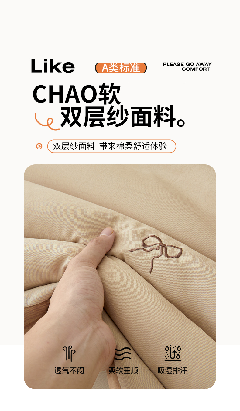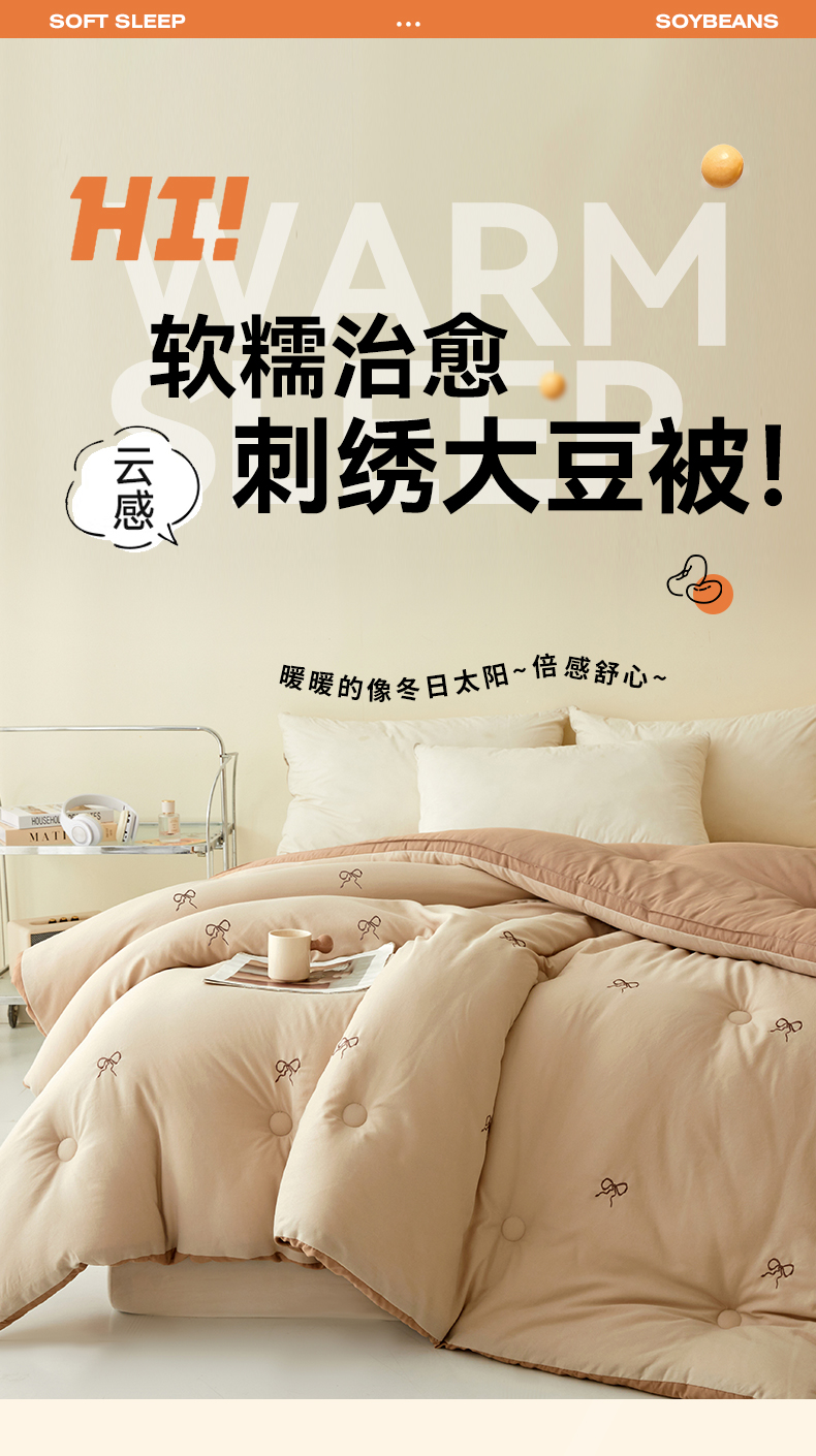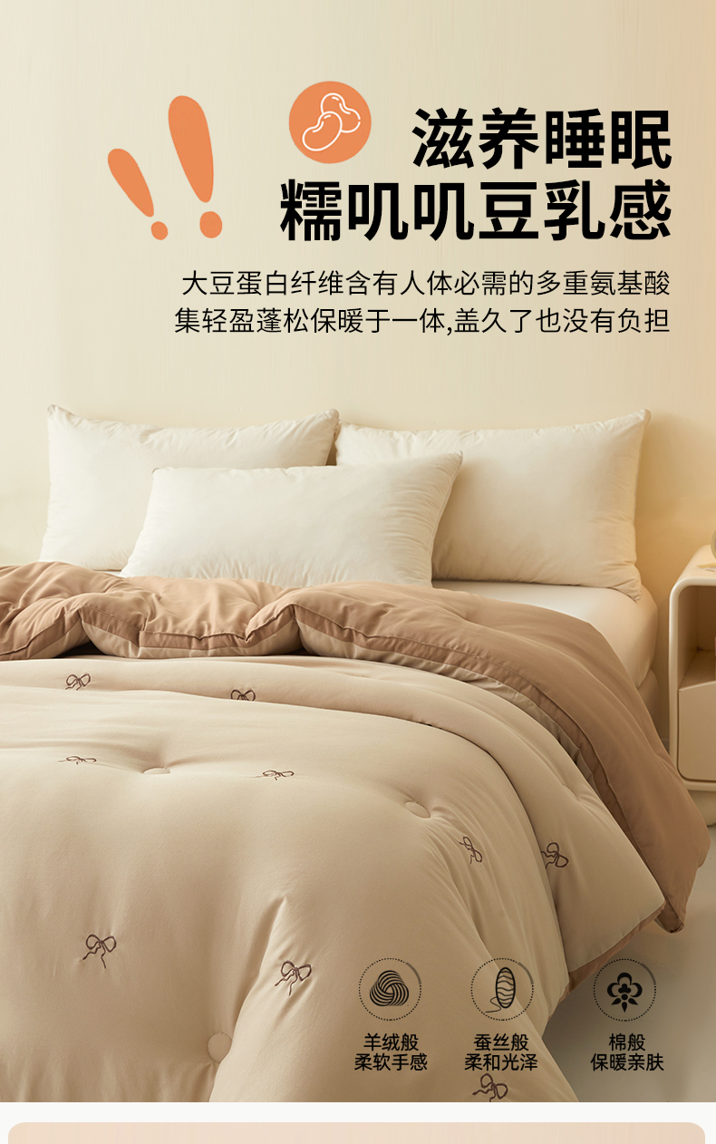 • 91家纺网 家纺一手货源 找家纺 维洋家纺 2025新款双层纱云感刺绣大豆被被子被芯 金棕蝴蝶结