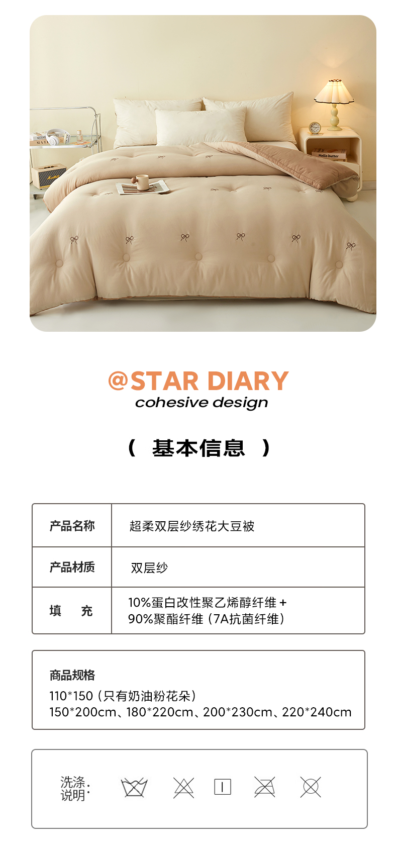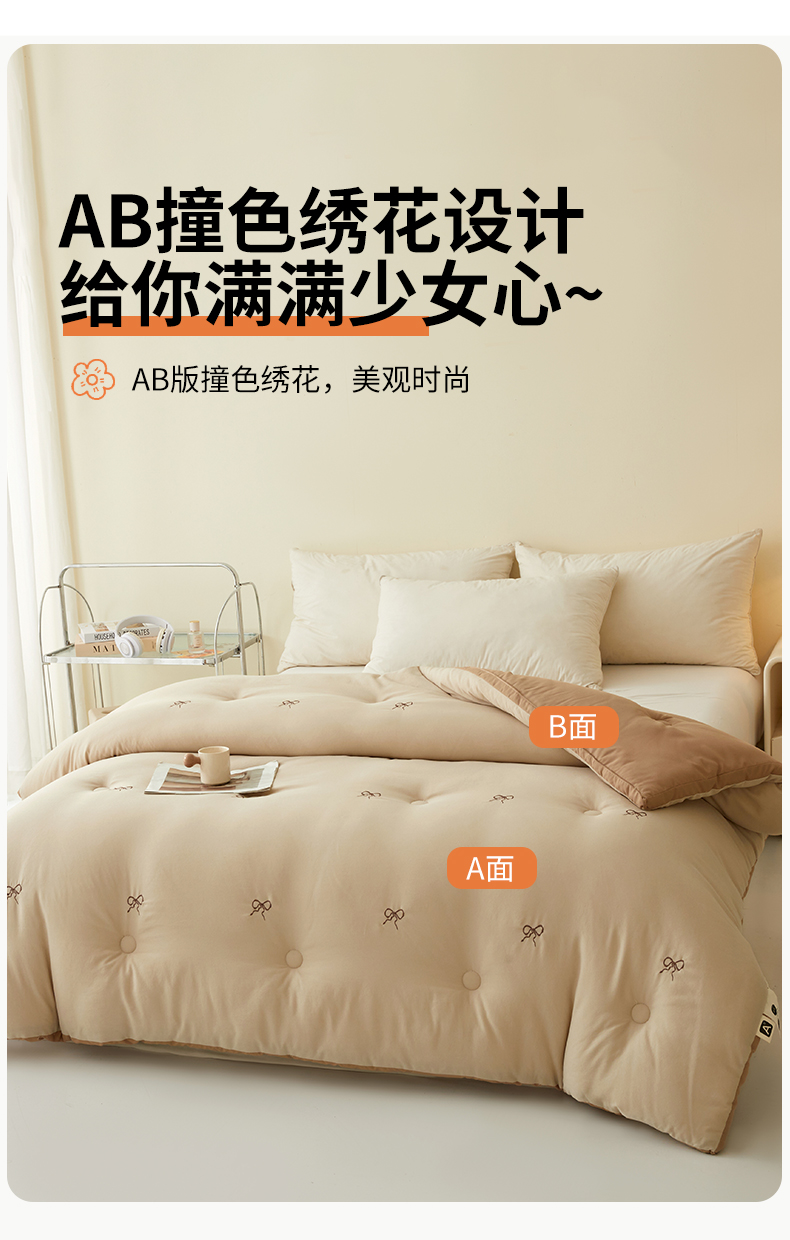 (总)维洋家纺 2025新款柔暖刺绣双层纱大豆子母被被子被芯,奶油粉花朵,奶油绿花朵,金棕蝴蝶结,奶咖蝴蝶,奶油蝴蝶结
