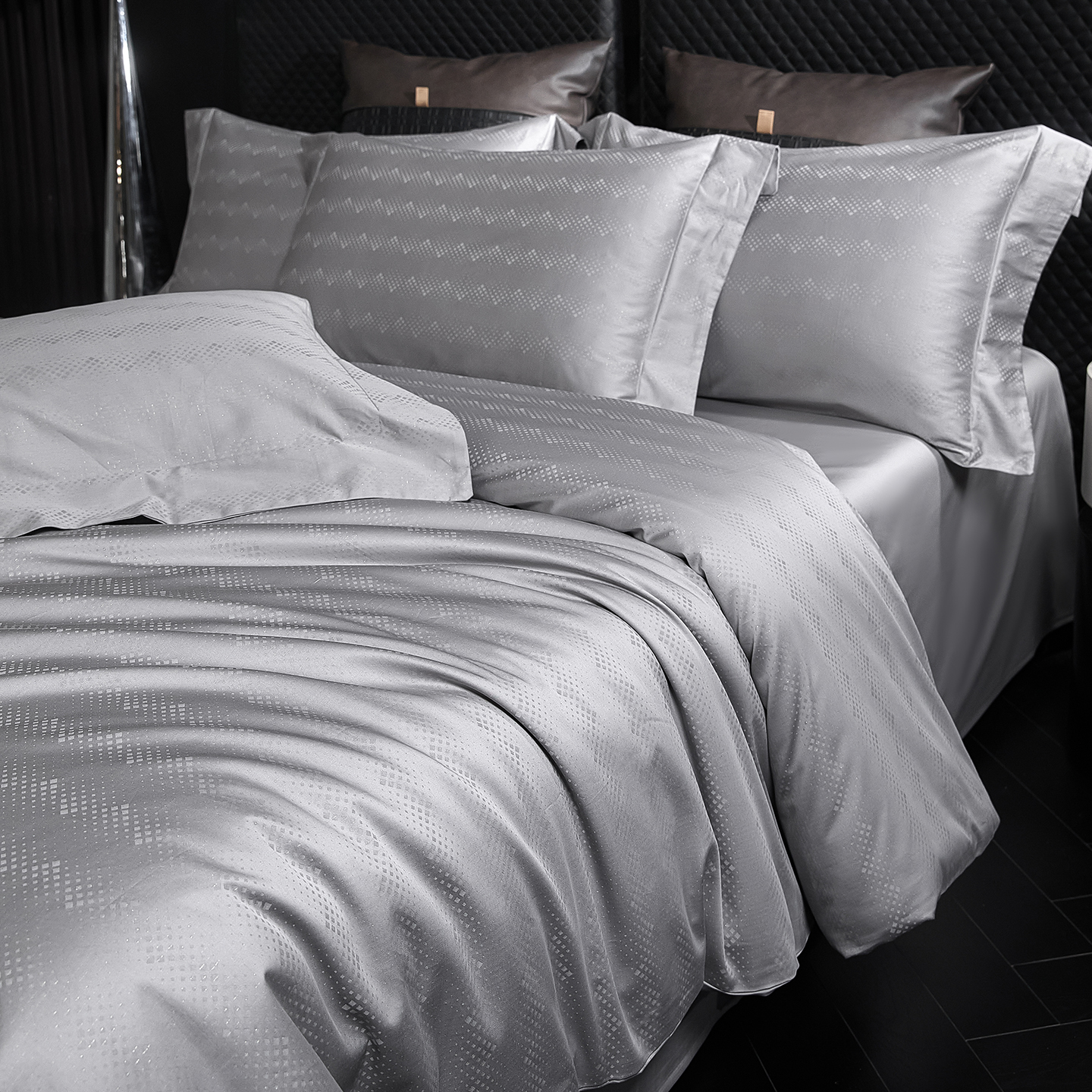 (总)安莱生活 2025春夏新款空气层色织提花四件套南阳假日系列,南阳假日-灰咖,南阳假日-卡其,南阳假日-银灰