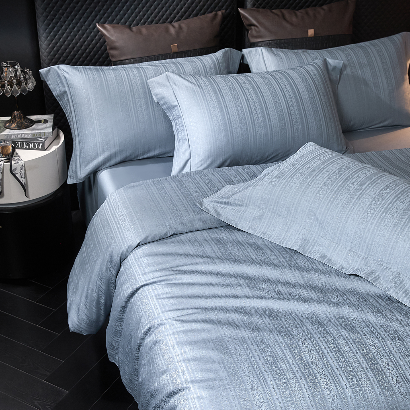 (总)安莱生活 2025春夏新款空气层色织提花四件套费尔岛系列,费尔岛-茶棕,费尔岛-咖啡,费尔岛-银灰