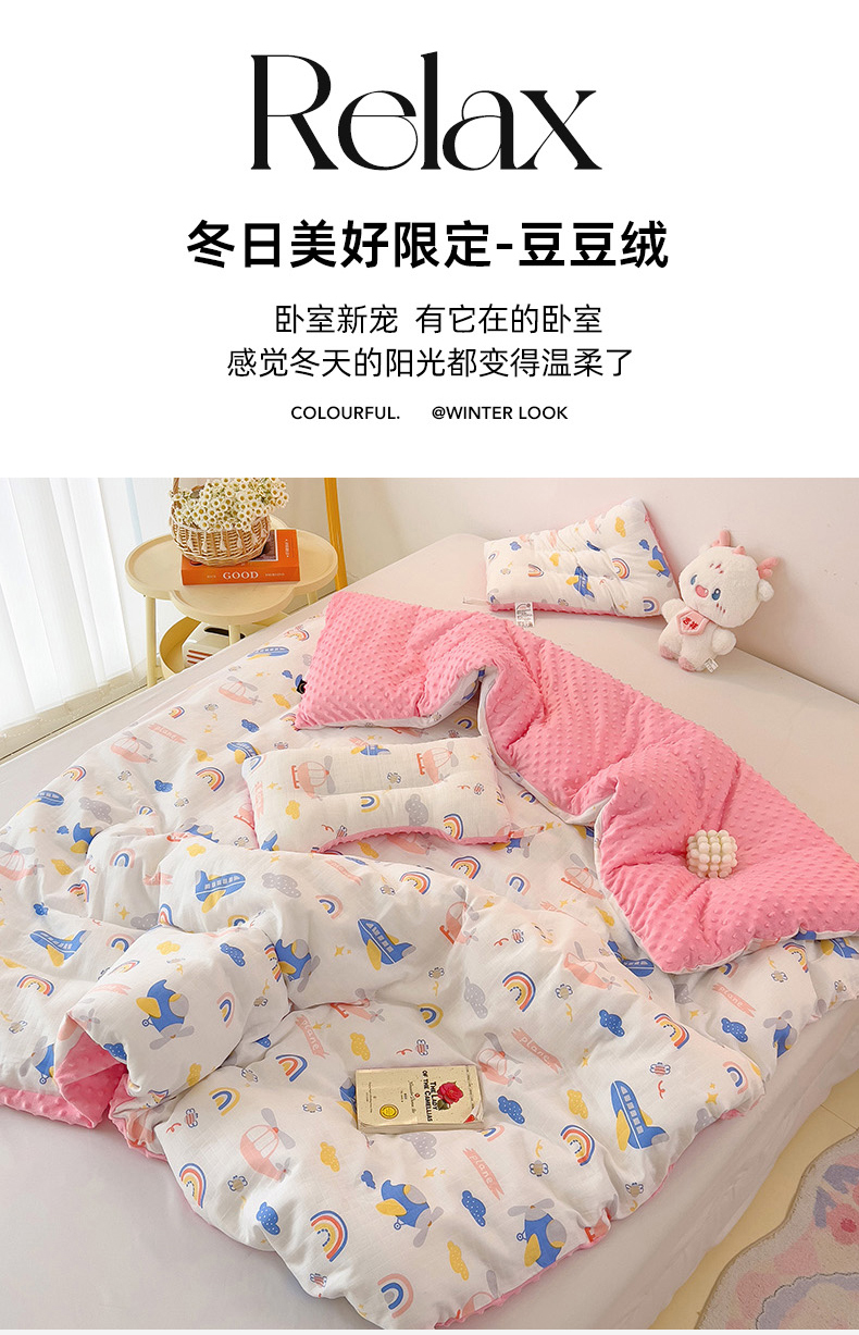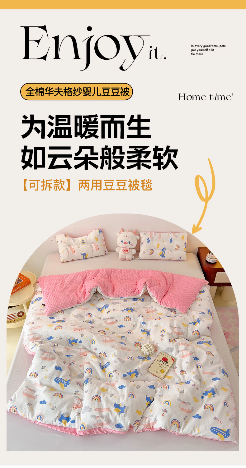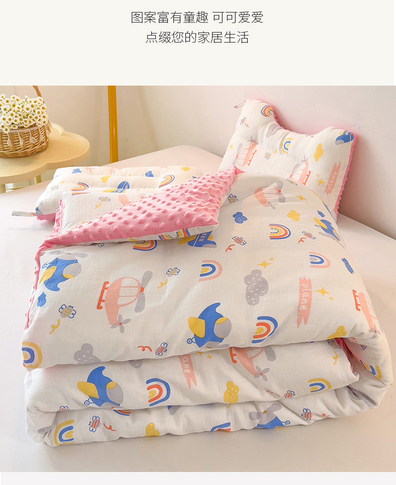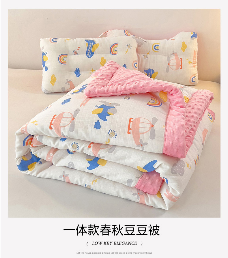 • 91家纺网 家纺一手货源 找家纺 十九色 2025新款婴幼儿安抚豆豆被全棉华夫格豆豆被一体款+可拆款(可机洗) 一体款-飞行日记