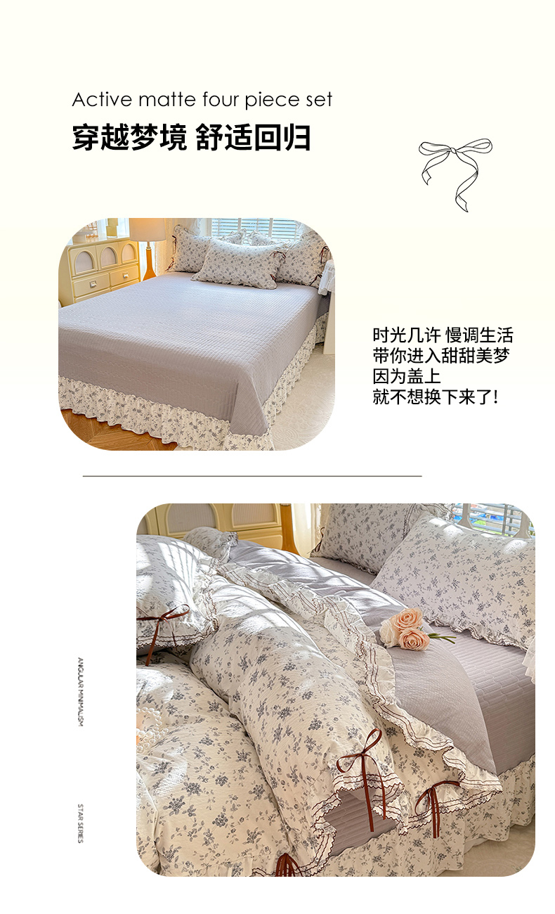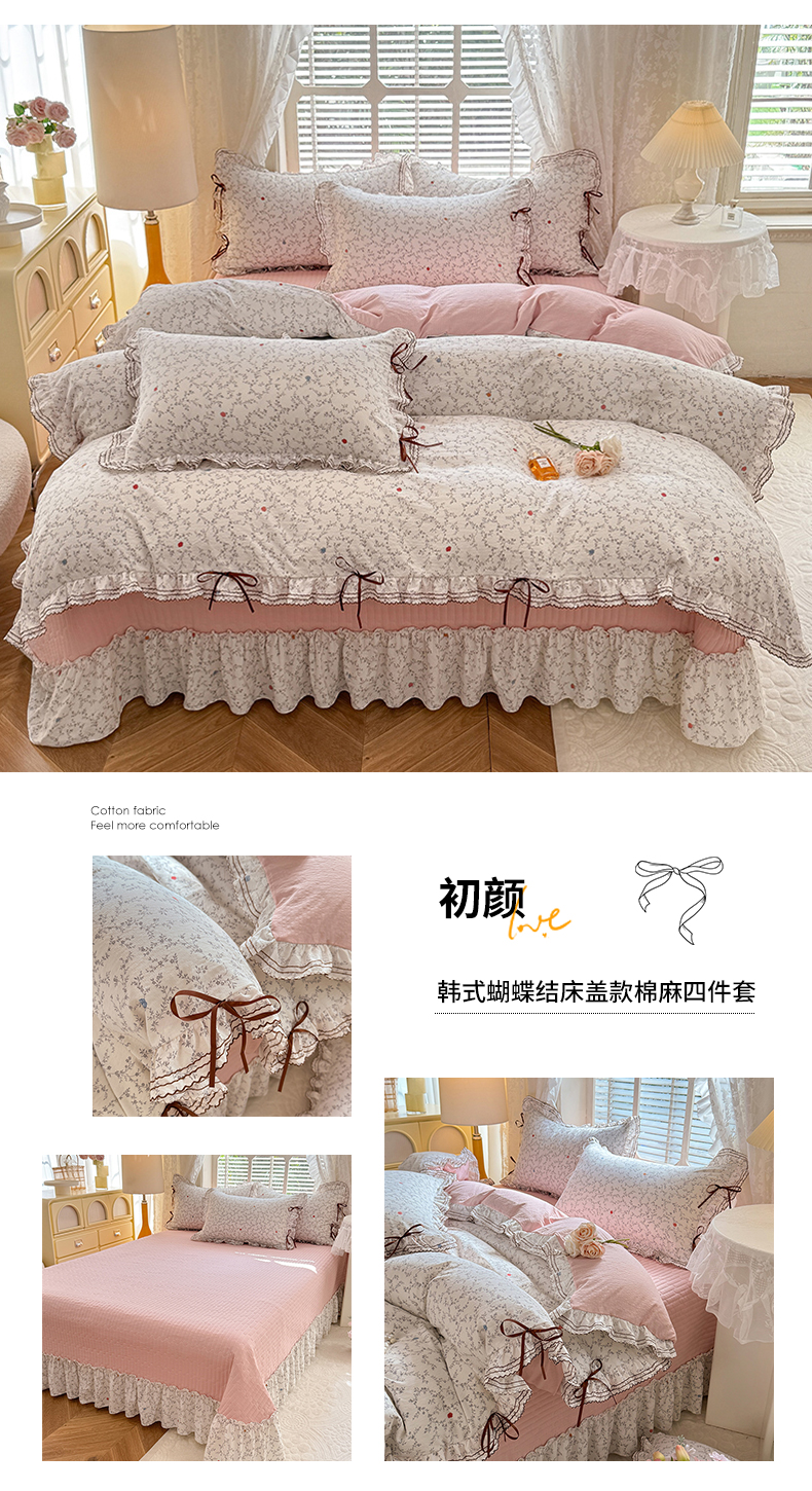 商品名称:韩约家纺 2025新款韩约1韩式蝴蝶结床盖款棉麻四件套 雅致
