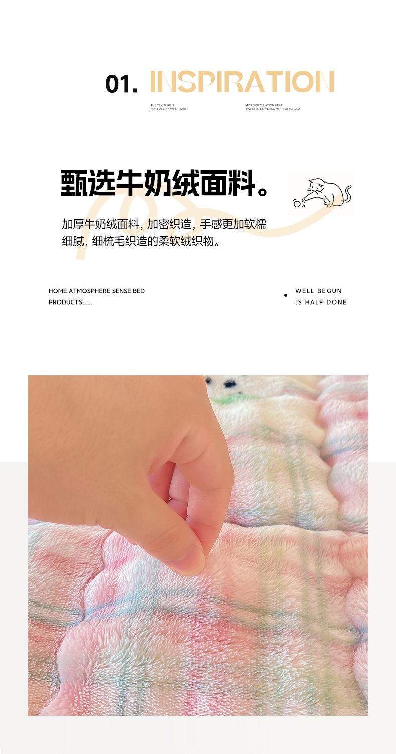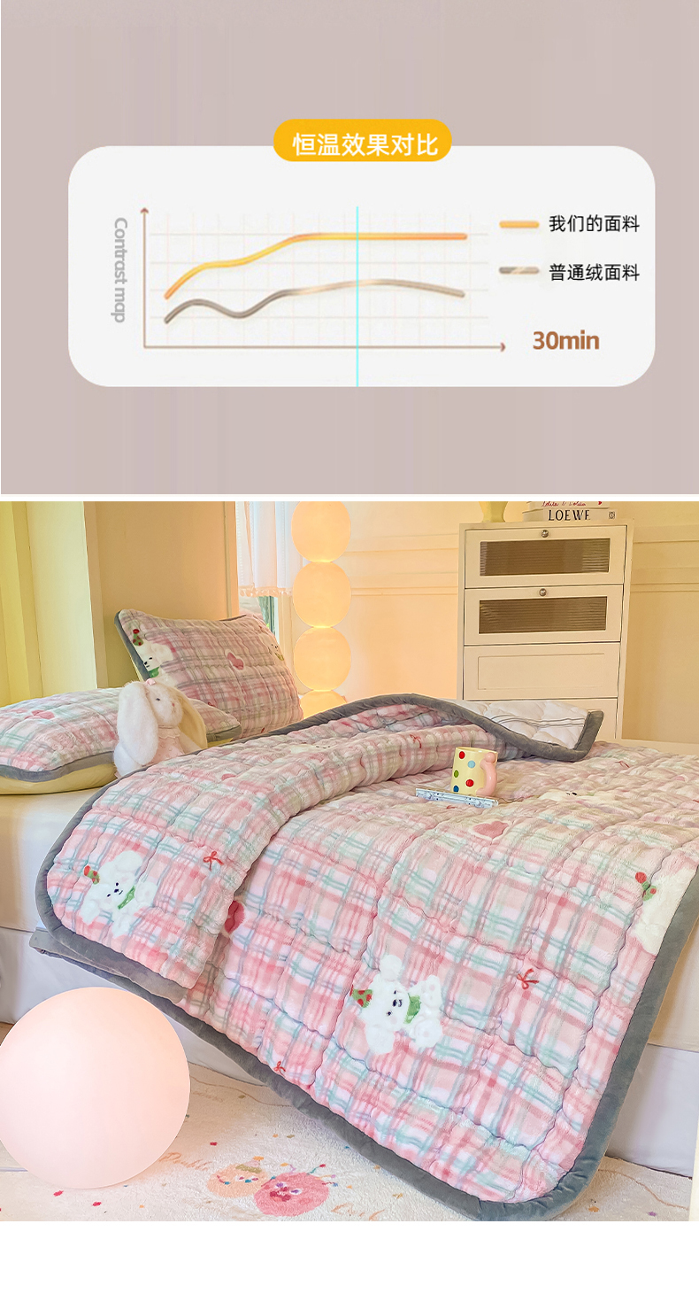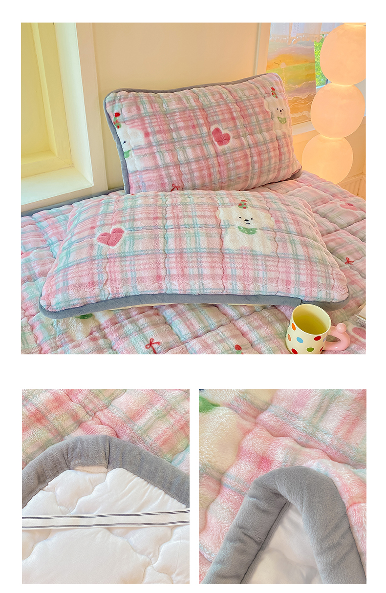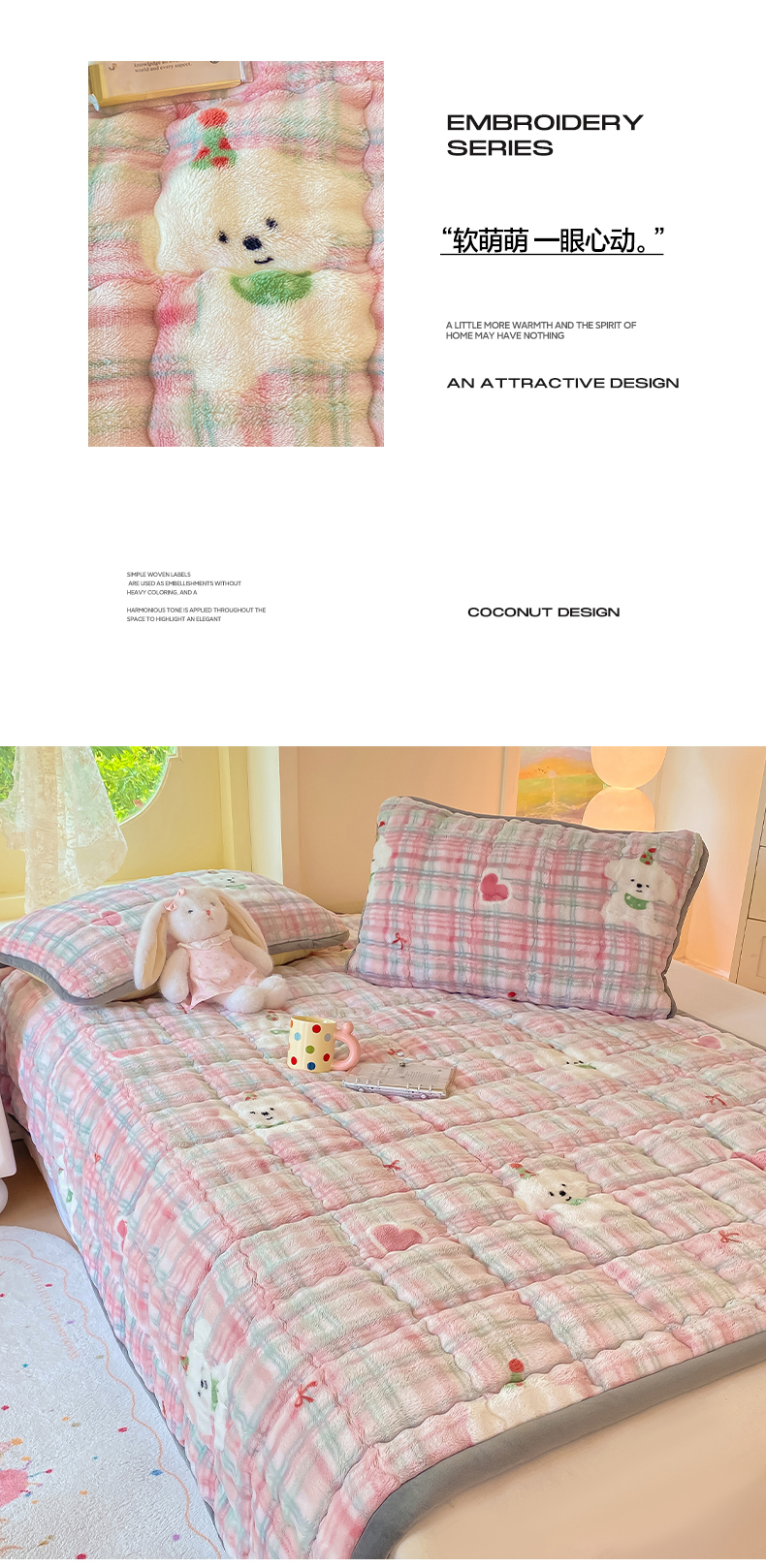 • 91家纺网 家纺一手货源 找家纺 眠势力 2025新款牛奶绒泡泡床垫加绒仿兔毛绒床褥子秋冬保暖珊瑚绒夹棉床护垫 格子小熊