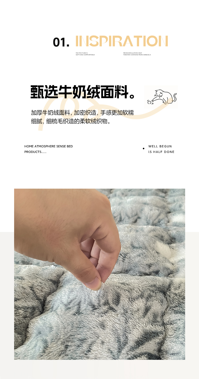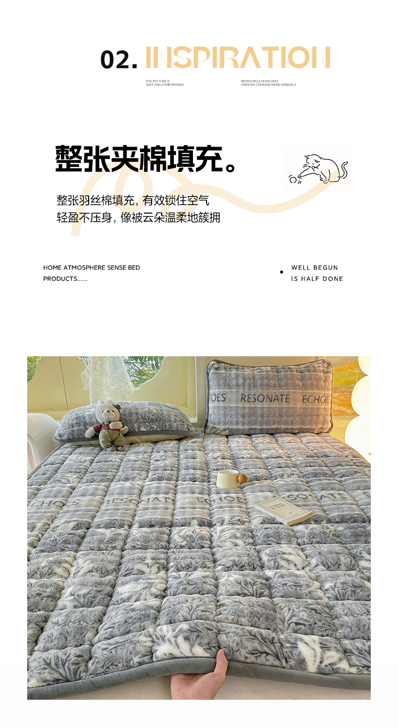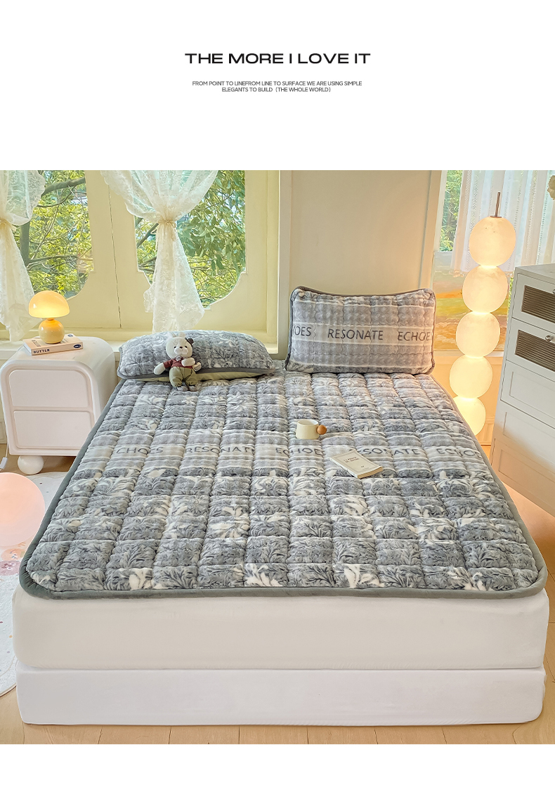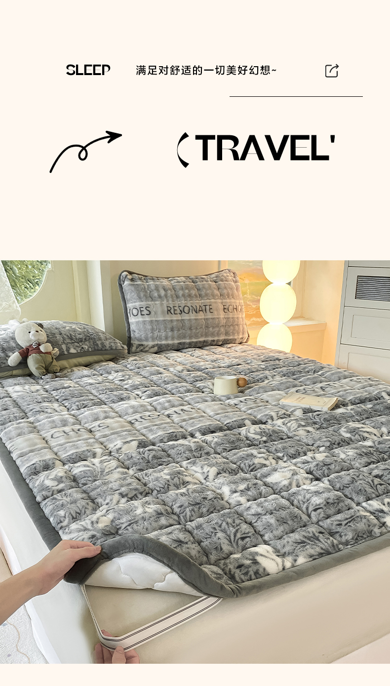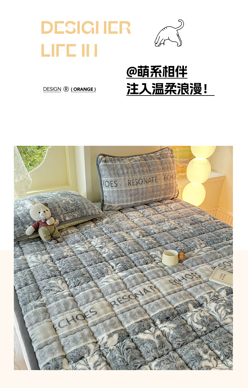 • 91家纺网 家纺一手货源 找家纺 眠势力 2025新款牛奶绒泡泡床垫加绒仿兔毛绒床褥子秋冬保暖珊瑚绒夹棉床护垫 雅韵