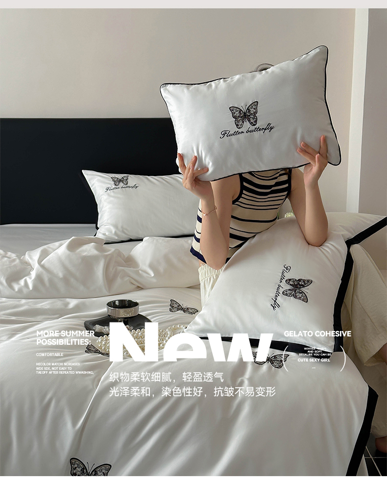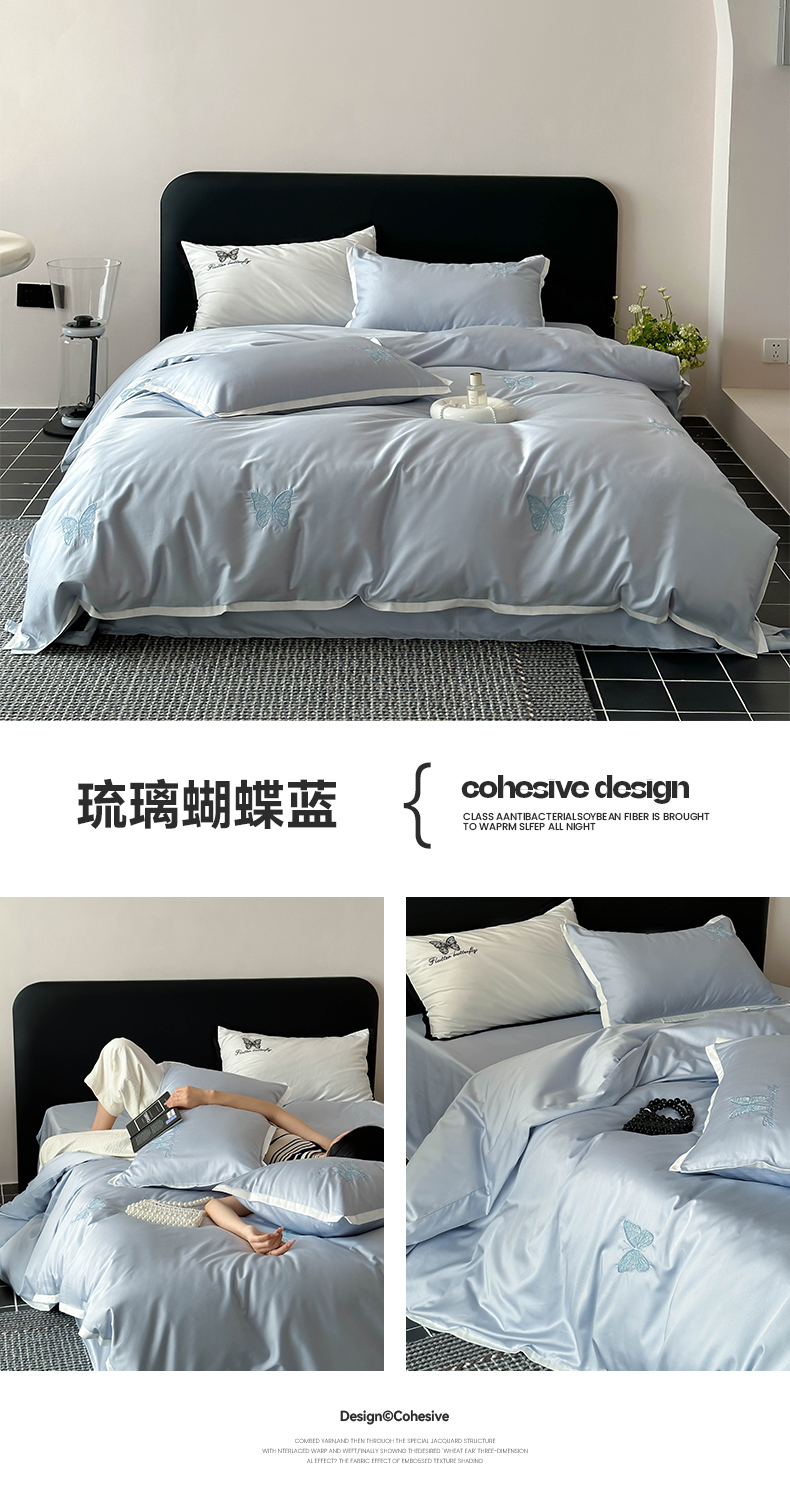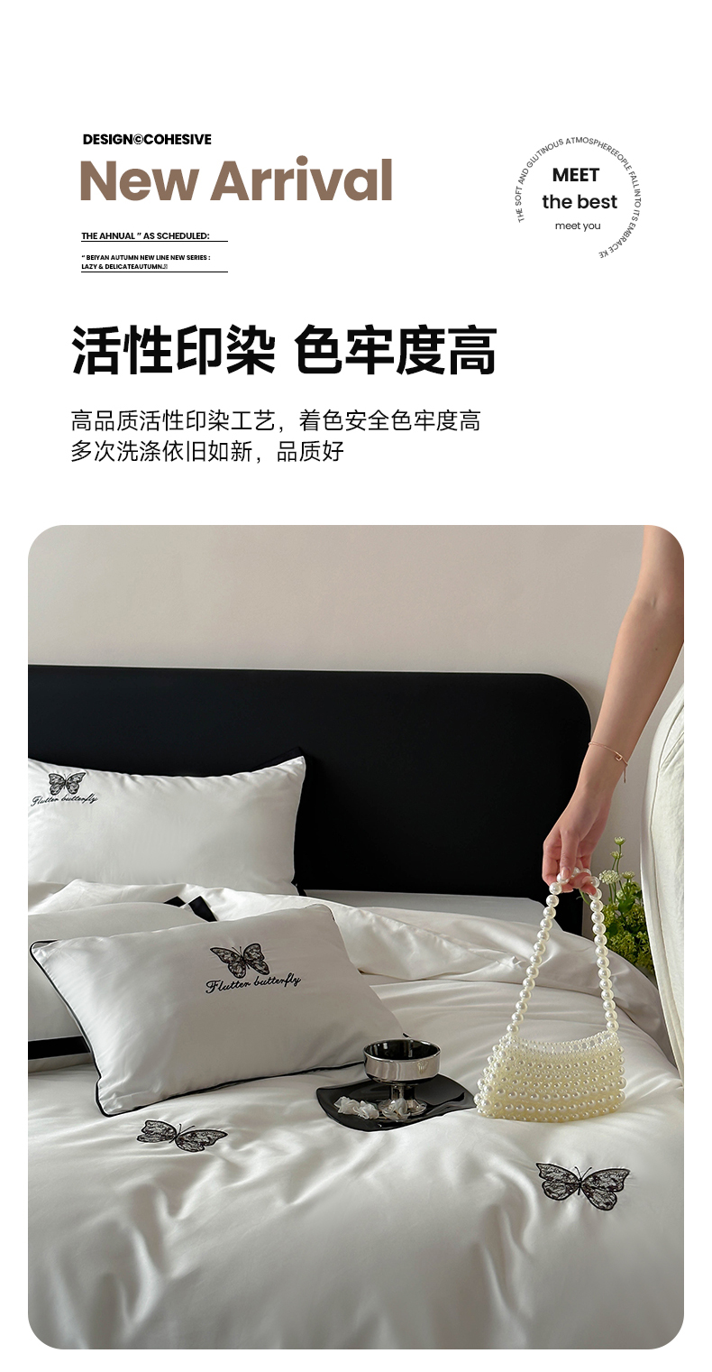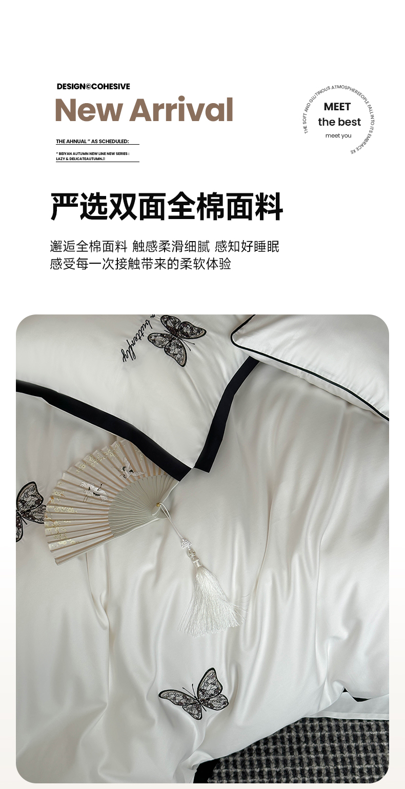 当前位置: 91家纺网 > 商品网购 > 床品套件 > 四件套 > 长绒棉四件套 > (总)简纯主义 2025秋冬新款A类100支全棉贡缎长绒棉蕾丝绣花四件套-琉璃蝴蝶