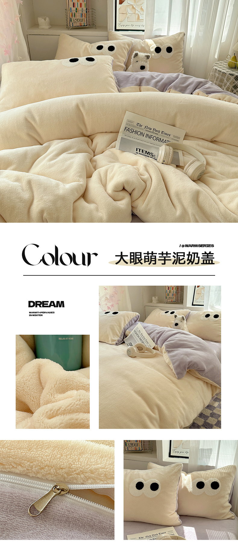 当前位置: 91家纺网 > 商品网购 > 床品套件 > 四件套 > 牛奶绒四件套 > 桃子家居 2025新款A类ins加厚毛巾绣大眼萌混搭撞色奶油格子牛奶绒系列四件套 绒毛巾绣-大眼萌珍珠椰椰