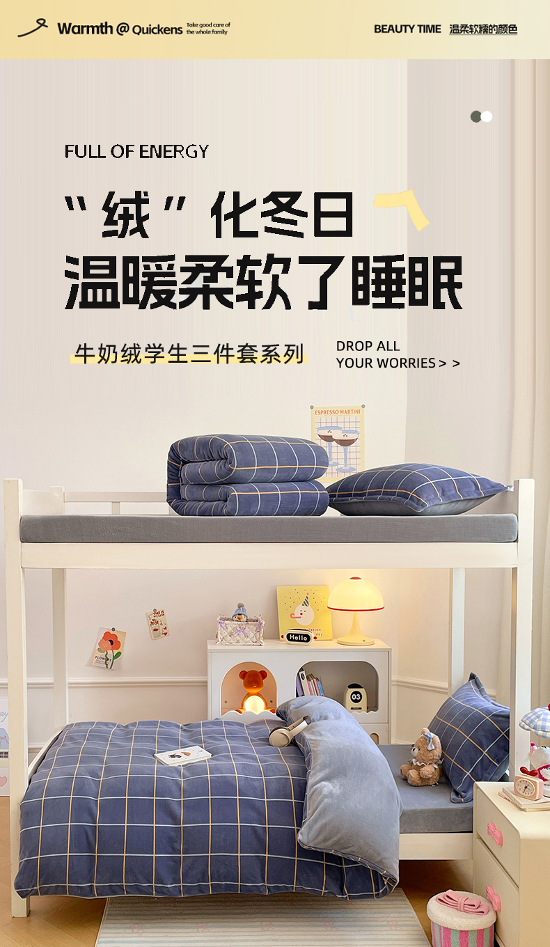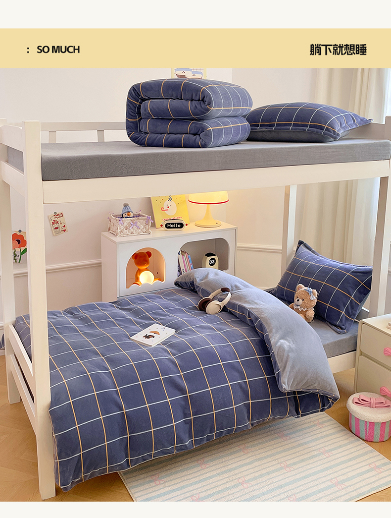 当前位置: 91家纺网 > 商品网购 > 床品套件 > 三件套 > 锦润家纺 2025新款亲肤舒适牛奶绒三件套学生三件套上下铺三件套宿舍三件套 格子控-蓝