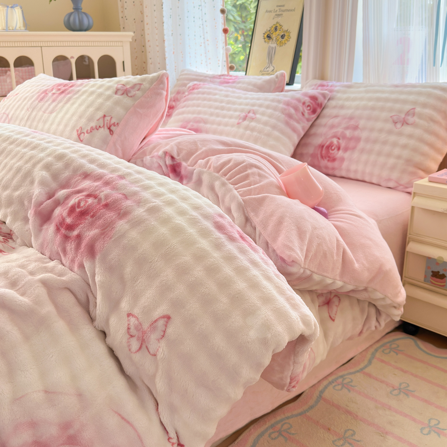 德比尔斯 2025新款泡泡牛奶绒四件套 山茶花香