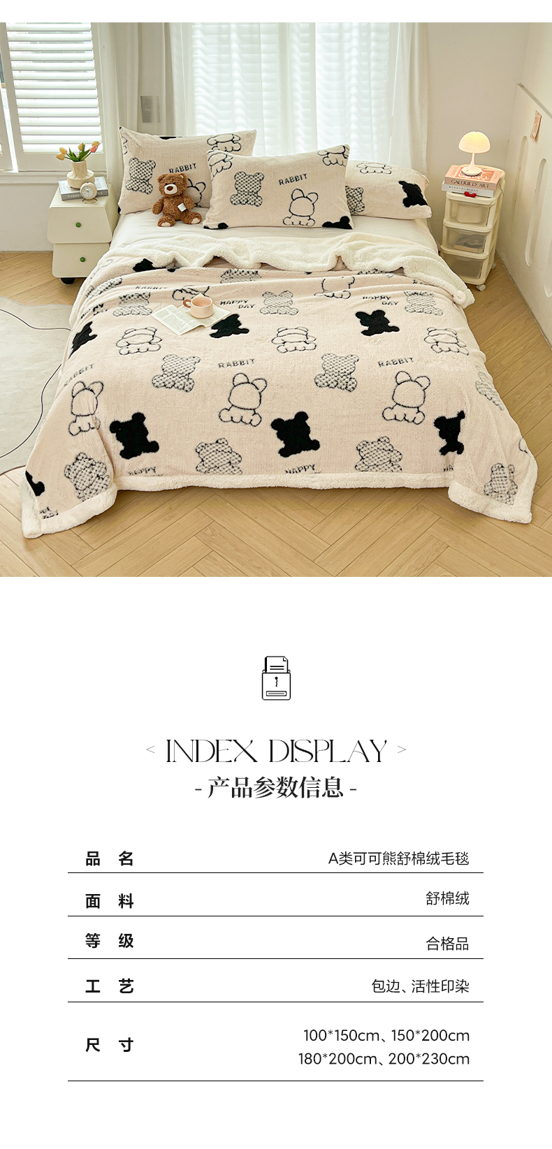 商品名称:(总)欧邦 2025新款A类舒棉绒毛毯盖毯毯子-可可熊
